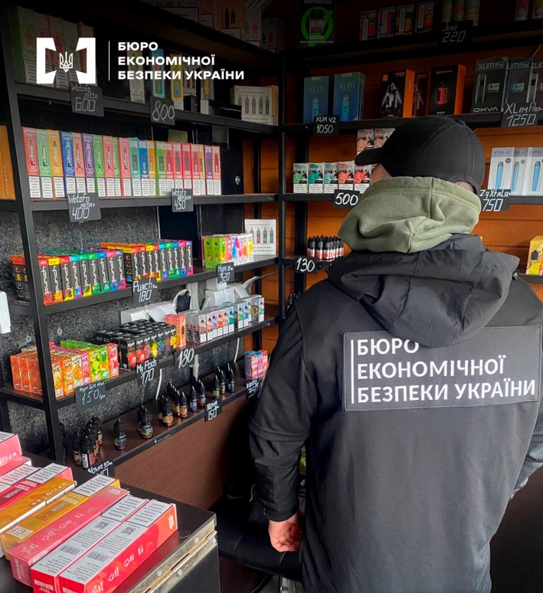 Детективи Бюро провели обшуки у восьми торгових точках та вилучили електронні сигарети, рідини й набори компонентів для них, тютюн для кальяну. Орієнтовна вартість вилученого становить близько два мільйони гривень.