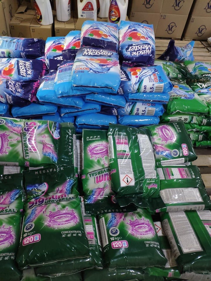 У ході обшуку вилучили понад 0,5 т контрафактного антисептика, а також велику кількість миючих та дезінфікуючих засобів відомих європейських брендів.