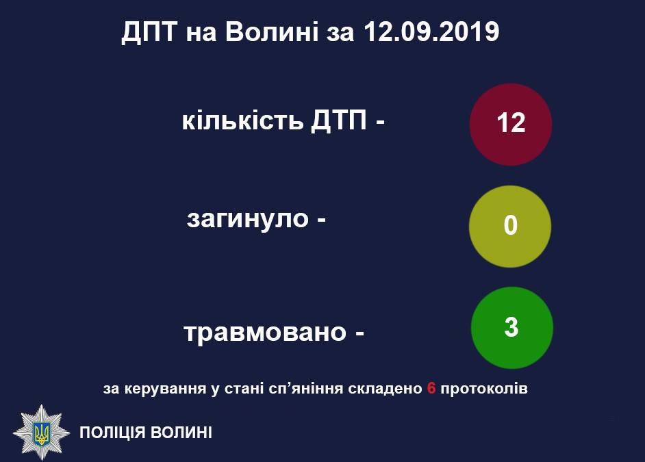 На Волині за добу сталося 12 ДТП у яких травмувалося троє людей.