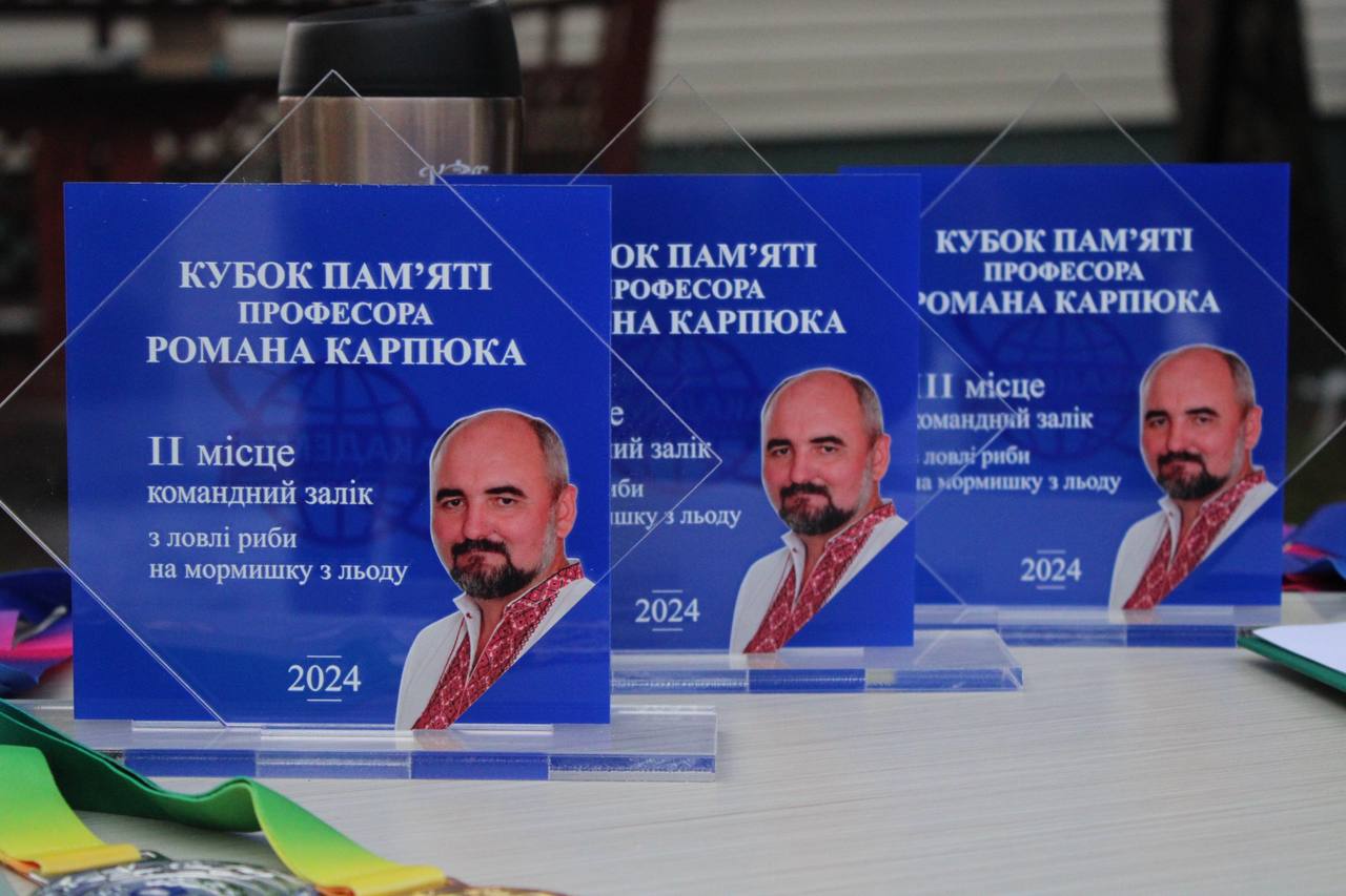 За «Кубок пам’яті професора Романа Карпюка» під час першого турніру із зимової риболовлі змагалися 15 команд і понад три десятки учасників. У відкритті меморіальних змагань взяли участь голова Волиньради Григорій Недопад, ректорка Академії рекреаційних технологій і права, депутатка обласної ради Людмила Стасюк, очільник профільної депутатської комісії Віктор Галан-Влащук, директор Західного центру олімпійської підготовки Олег Вегнер, а також члени родини Романа Карпюка.