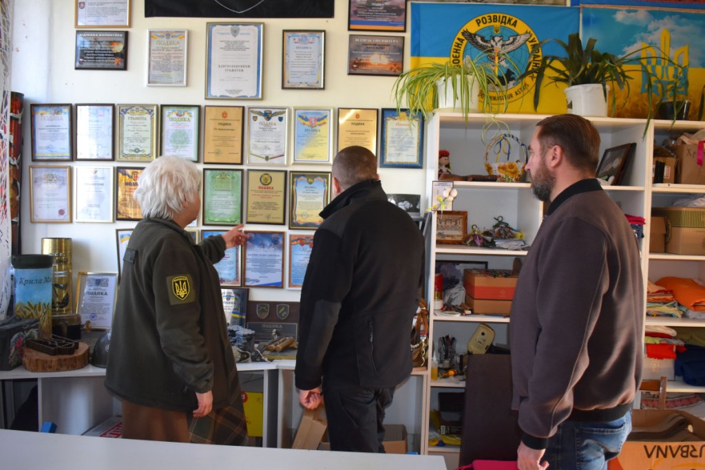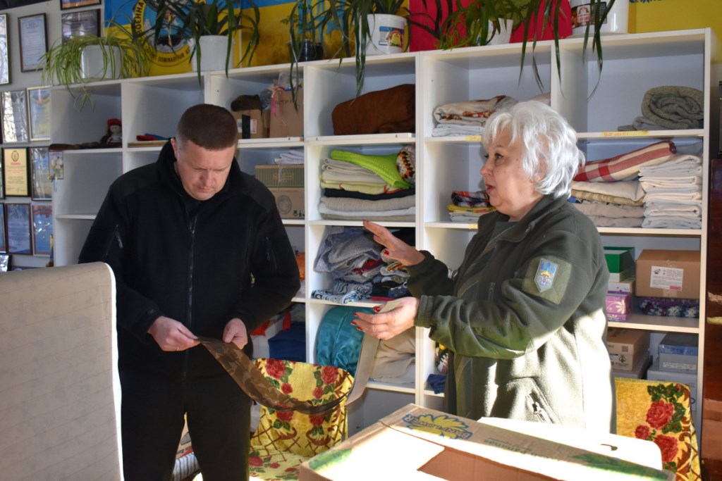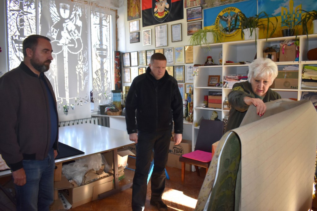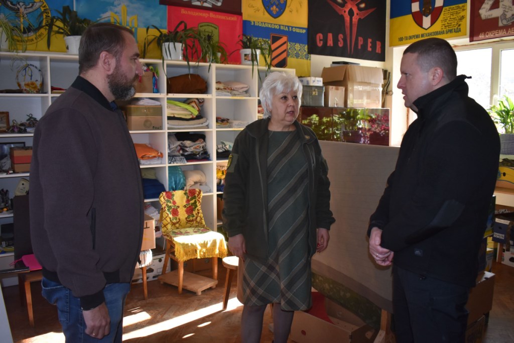 Опісля завітав до громадської організації «Крила матері». Отримав запрошення також під час робочої онлайн-зустрічі в ОВА, але цього разу з волонтерами та благодійниками. Це організація, яка займається плетенням маскувальних сіток для військових. На сьогодні на їх рахунку вже 63 тисячі квадратних метрів маскувальних сіток. Однак, керівниця організації Діана Шевчук звернулася з проханням посприяти у наданні матеріалів. Звичайно, Волинська ОВА допоможе у такій справі.
