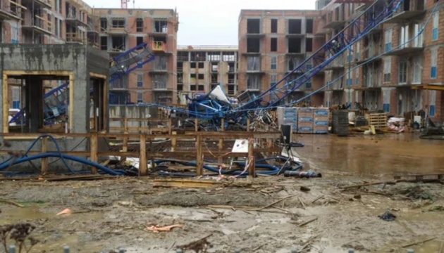 У Кракові в результаті сильних поривів вітру впав 30-метровий підйомний кран: рятувальники намагаються реанімувати оператора крана, на землі в результаті його падіння постраждало троє робітників.