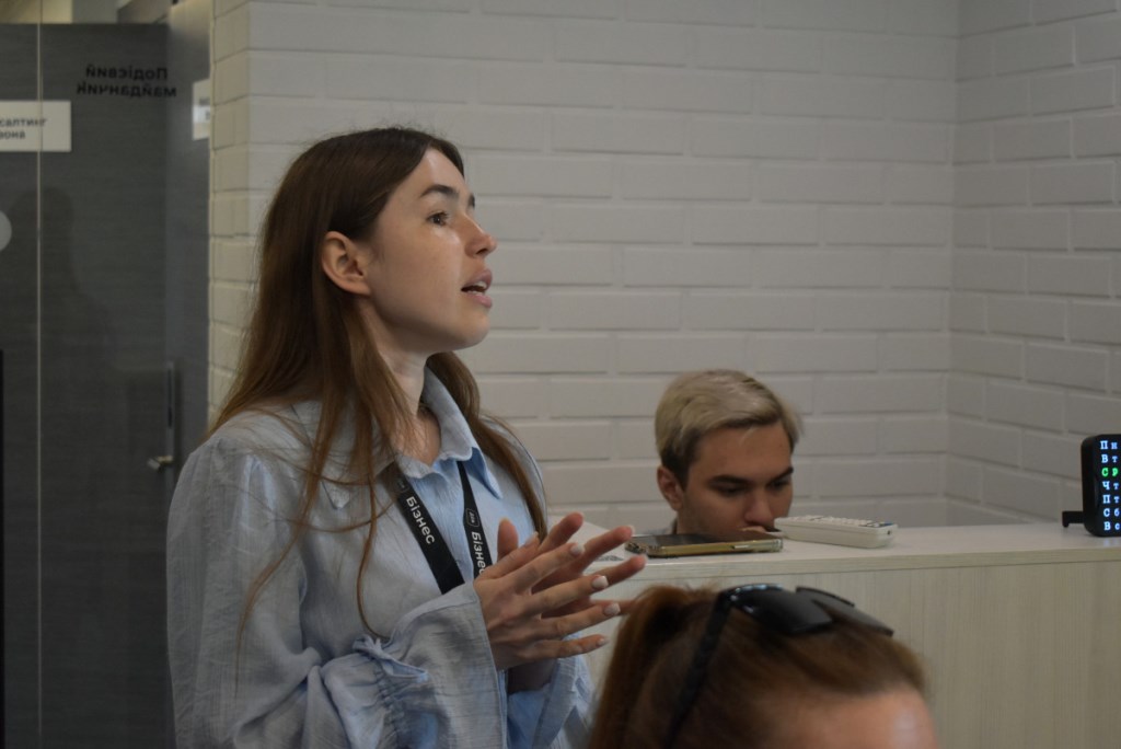 Під час розмови учасники зазначили, що часто складним є процес подання заявки та прорахунок бізнес-плану. Відтак, начальниця відділу реалізації проєктів Волинського обласного центру зайнятості наочно показала та прокоментувала кожен розділ у цьому процесі. Також цікавились про те, де дізнатися про потреби ринку, попит та пропозиції.