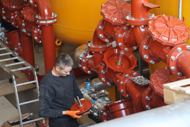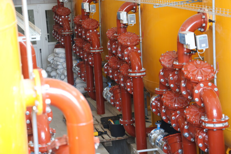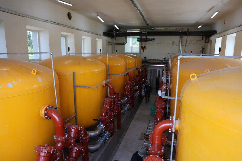 Одним із найскладніших об’єктів є станція напірних фільтрів, яка забезпечуватиме 90 % очистки усієї води. Тут багаторівнева засипка фільтруючого матеріалу, який під тиском буде очищатись та автоматично промиватись. Це фільтрат американської компанії Culligan – найбільш відомого виробника цього обладнання у світі. Інсталяцію цього об’єкту завершать через два місяці.
