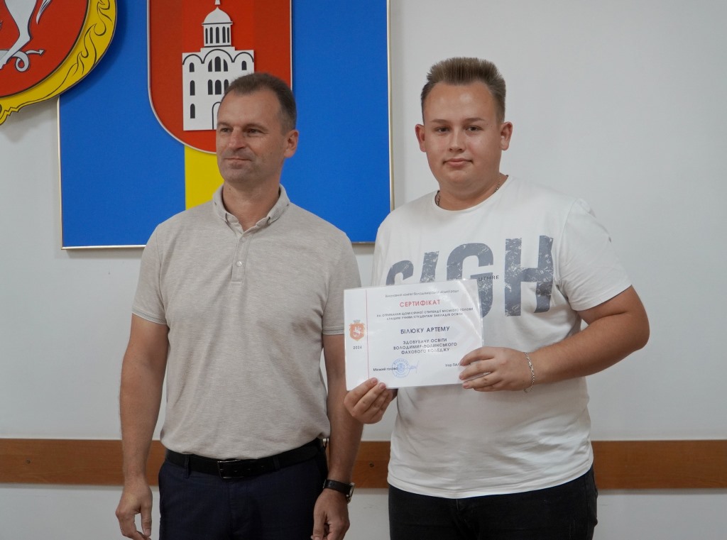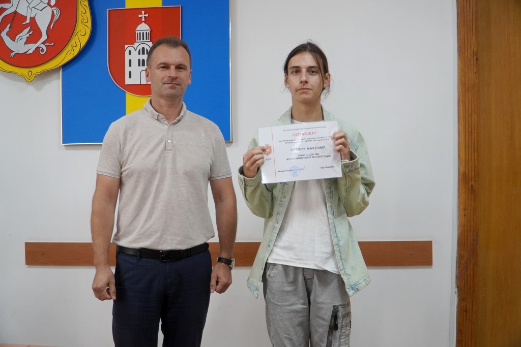 – Артему Білюку, здобувачу освіти Володимир-Волинського фахового коледжу;