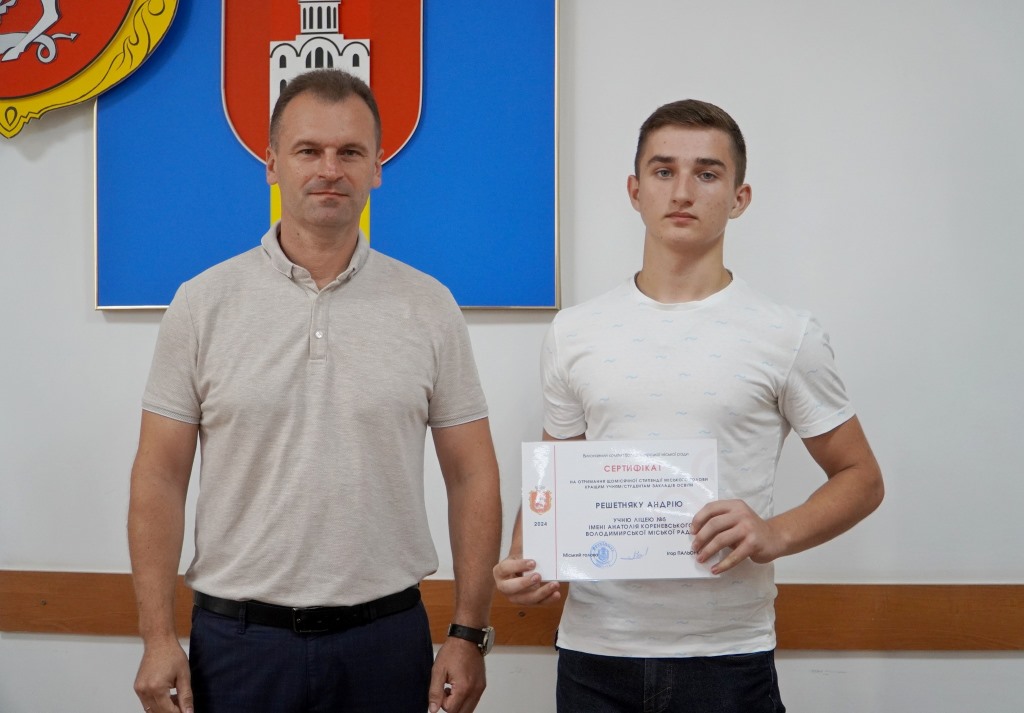 – Андрію Решетняку, учню ліцею № 5 імені Анатолія Кореневського Володимирської міської ради;