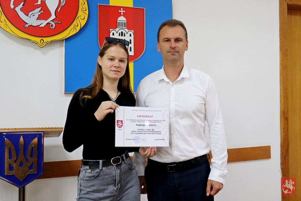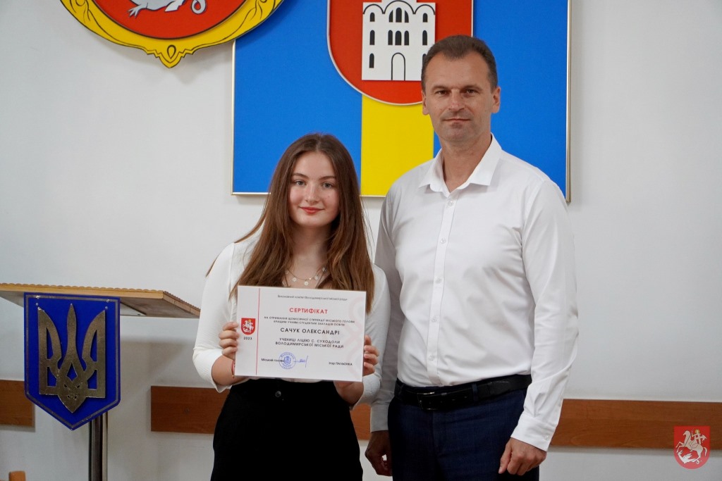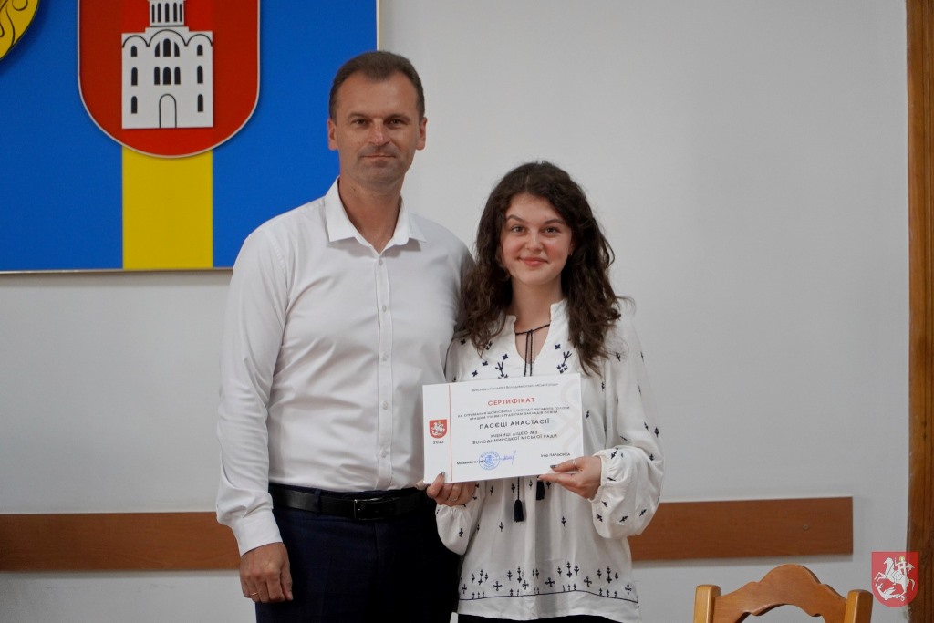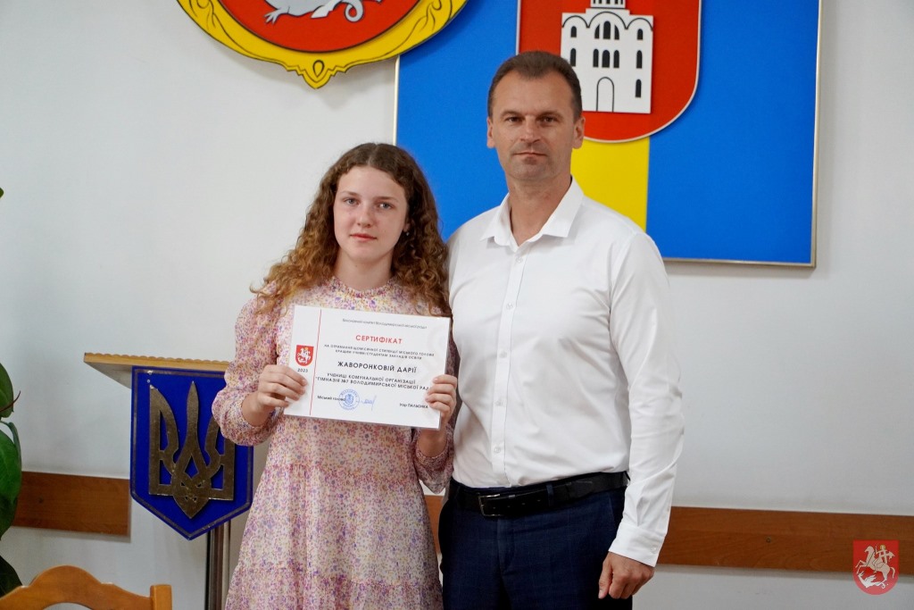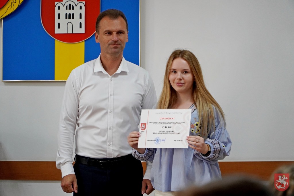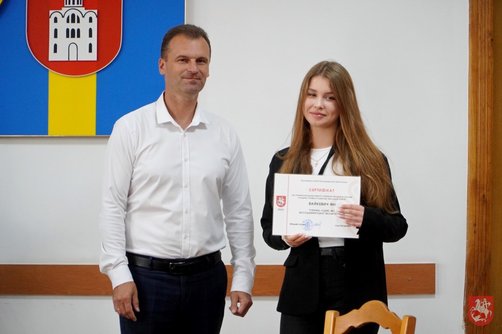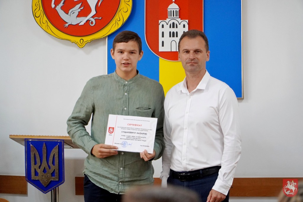 Найкращим учням Володимирської громади вручили сертифікати на отримання стипендії міського голови