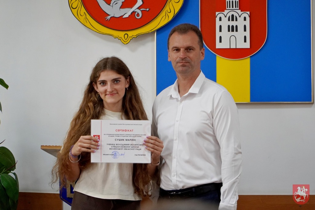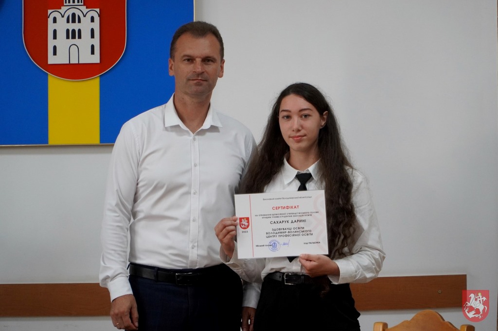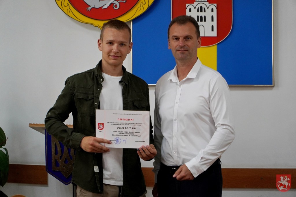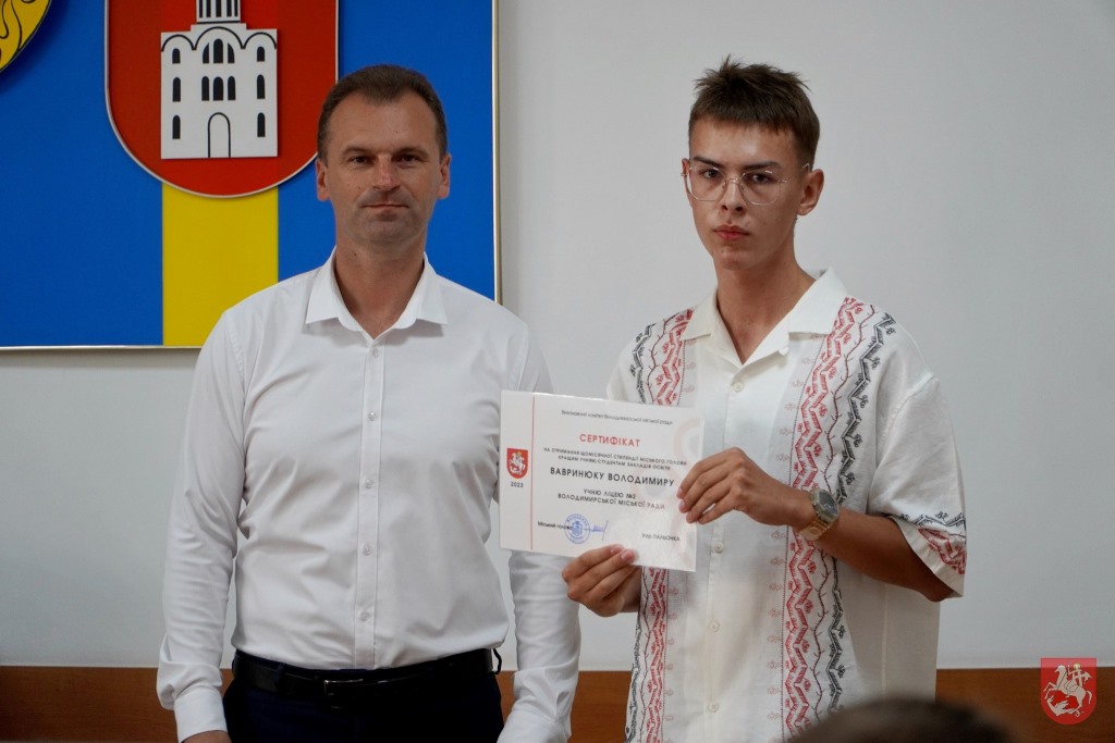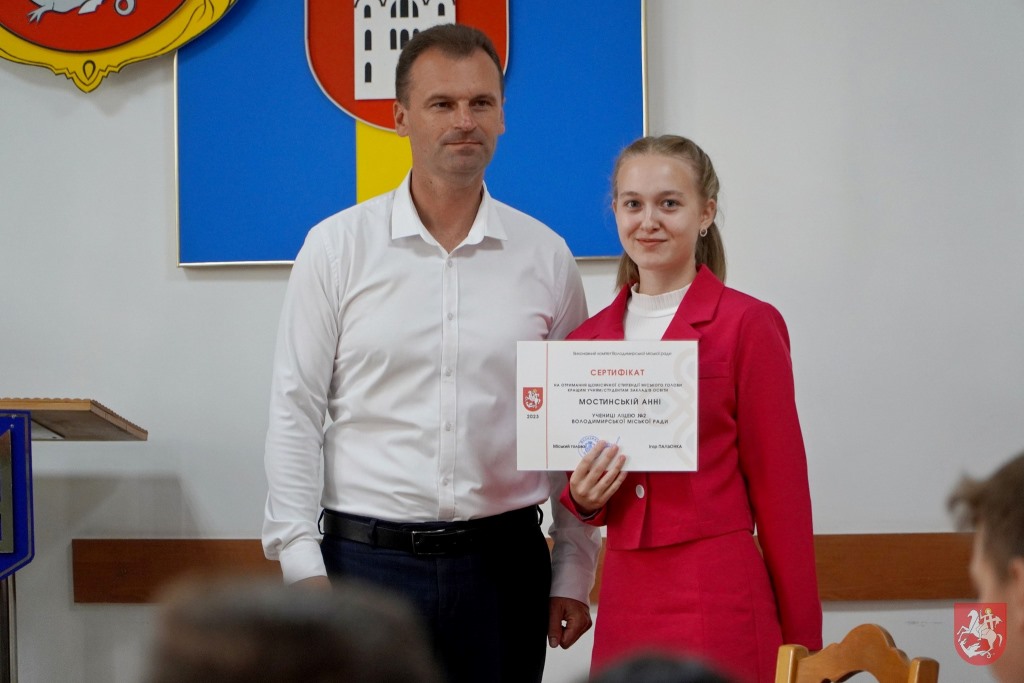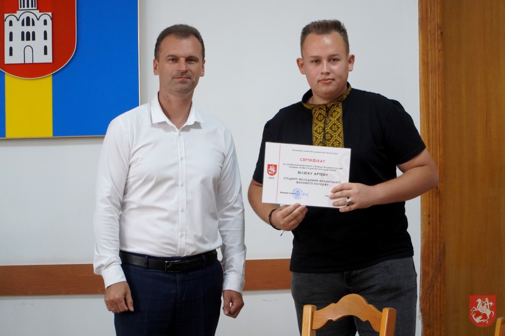 19 вересня Володимирський міський голова Ігор Пальонка вручив сертифікати на отримання стипендії міського голови кращим учням і студентам закладів освіти, що функціонують на території Володимир-Волинської територіальної громади.