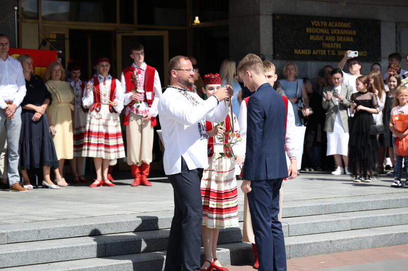 “Навчання в школі – надзвичайно важливий етап у житті кожної людини, адже це одна з основ подальшого розвитку та успіху. Я вітаю вас з тим, що цей період життя ви завершили на відмінно. Сьогодні ми відзначаємо тих, хто був найстараннішим, найдисциплінованішим, найпрацьовитішим. Якщо в подальшому житті ви збережете ці якості, то обов’язково станете успішними. Я дякую вчителям за те, що ви передавали свої знання, життєву мудрість та ділилися частинкою душі зі своїми учнями. Дякую батькам за настанови, допомогу та мотивацію дітей. Звичайно ж, дякую випускникам за старанність під час здобуття знань, які вони неодмінно використають у майбутньому. Велика вдячність Збройним Силам України за те, що в нашому рідному Луцьку можемо проводити такі приємні заходи та за відносно мирне життя у нашій громаді. Бажаю усім нам, щоб наступні кроки у нашому житті ми робили вже у мирній, успішній, процвітаючій державі. Перемоги та Божого Благословення Україні”, – сказав Ігор Поліщук.