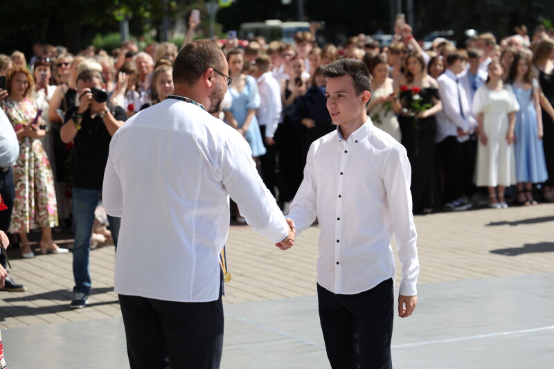 Сьогодні, 20 червня, на Театральному майдані Луцька відбулося урочисте вручення медалей випускникам місцевих шкіл. Сотні учнів зібралися на центральній площі, щоб отримати заслужені нагороди за високі досягнення у навчанні, активну участь в олімпіадах, конкурсах та шкільному житті. Цьогоріч золоті і срібні медалі отримали 245 найуспішніших і найстаранніших учнів, з них 209 – золотих та 36 срібних.