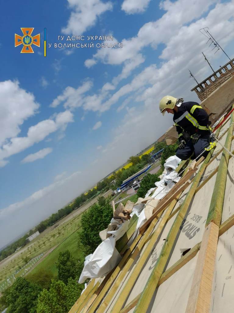 У Володимирі рятувальники ДПРЧ-7 демонтували пошкоджені вітром елементи даху на п’ятиповерхівці.