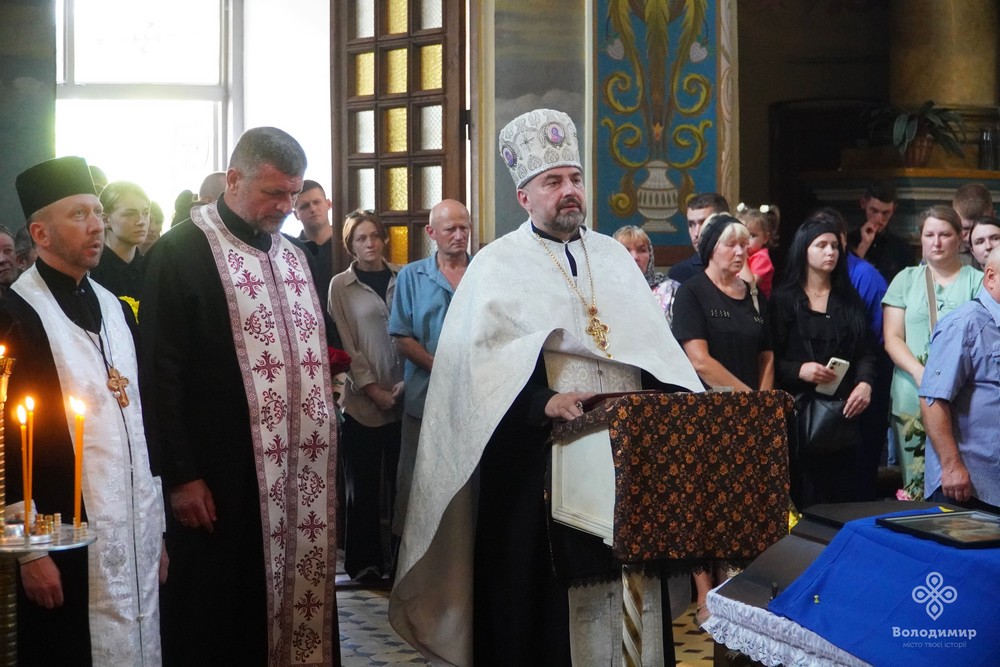 Попрощатись із воїном у Соборі Різдва Христового прийшли його рідні, друзі, бойові побратими, представники влади та небайдужі мешканці. Важко підібрати слова, аби розрадити скорботну родину у такій невимовній втраті. Перший заступник міського голови Ярослав Матвійчук висловив щирі співчуття батькам, брату, дружині та крихітній донечці полеглого Героя, які у цій війні втратили найдорожче — рідну душу, частинку серця, надійне плече та неосяжну батьківську любов і тепло.