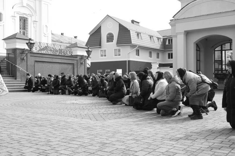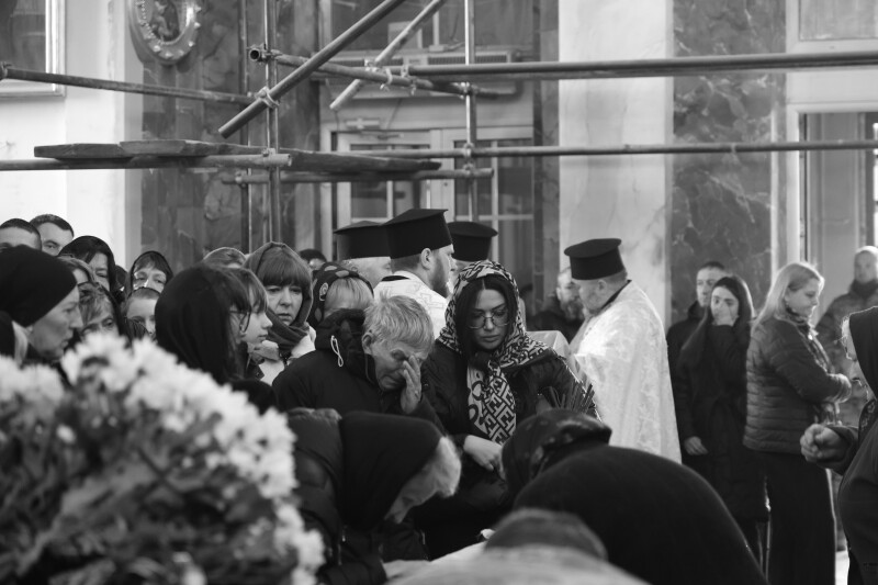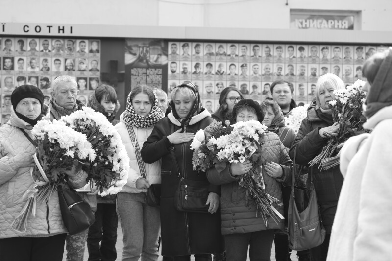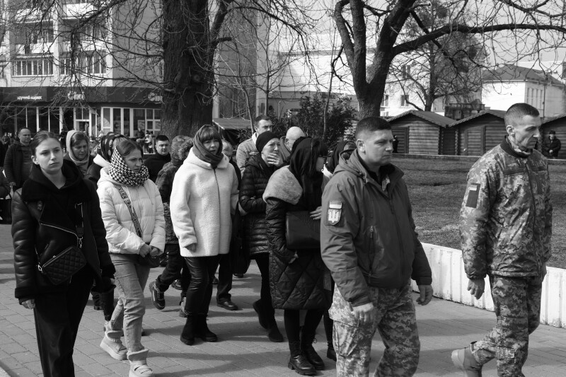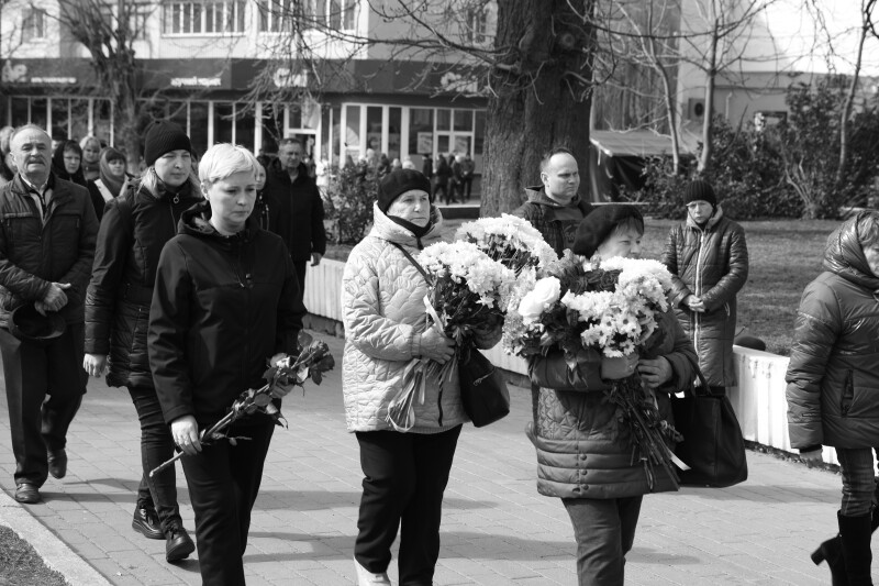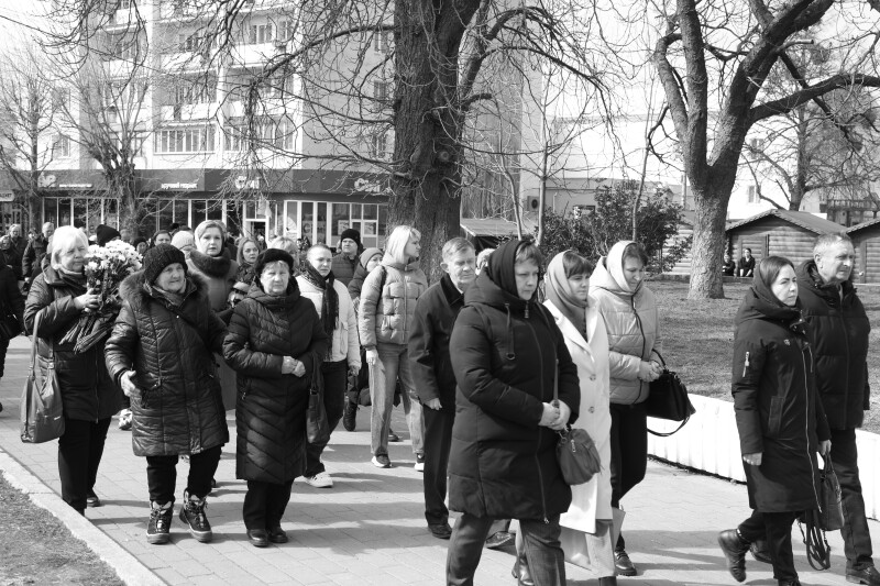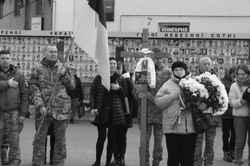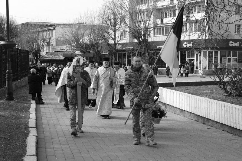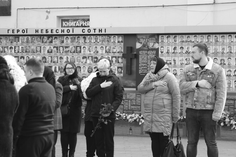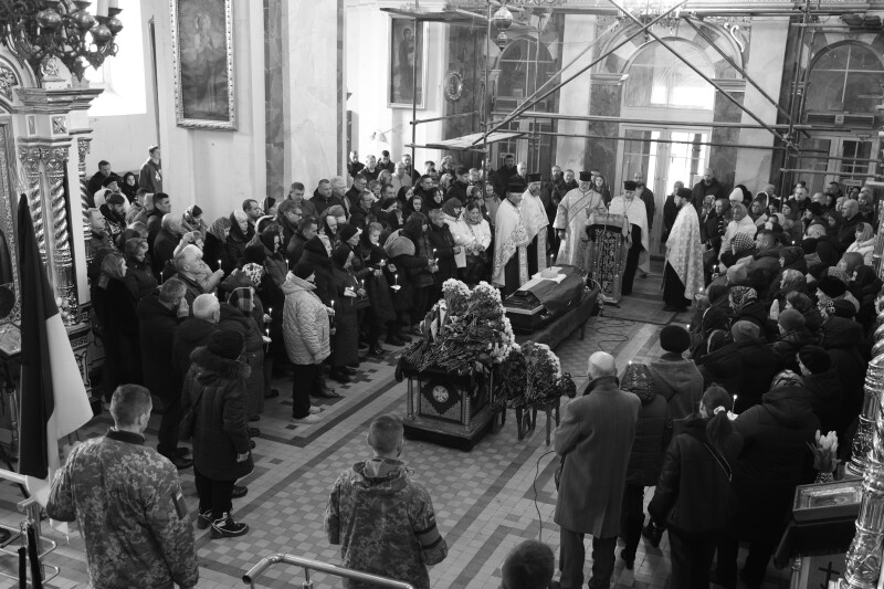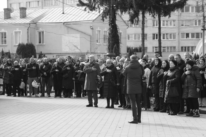 Після завершення богослужіння домовину з тілом загиблого захисника пронесли Театральним майданом. Біля пам’ятного фотостенда загиблим Героям траурна процесія зупинилася і виконала Державний Гімн.