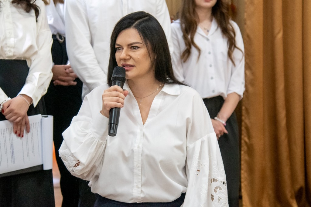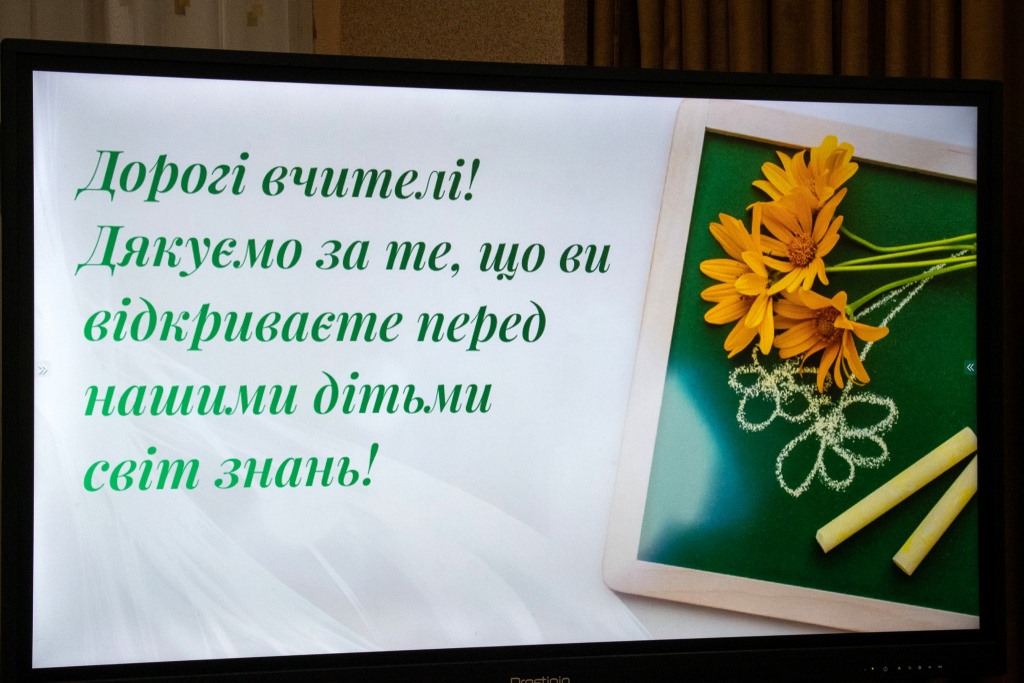 «Сьогодні свято тих, хто сіє зерно знань, відкриває нові горизонти, прищеплює цінності та формує майбутнє нашої країни. Я щиро дякую вам за віддану працю, за те, що любите дітей і свою професію. Дякую, що у ці складні часи ви є світлом для наших учнів, опорою для батьків і підтримкою для України. Особлива вдячність сьогодні нашим колегам Володимиру Кудину та Віталію Туришину, які вступили до лав ЗСУ та спільно з побратимами виборюють незалежність нашої держави і дають нам змогу жити, працювати і відзначати наше свято», – наголосила вона.