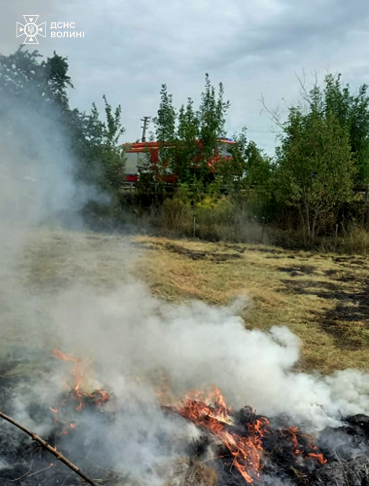 Крім того, минулої доби рятувальники разом з командами місцевої пожежної охорони ліквідували 3 пожежі на відкритих територіях — загоряння сухої трави на території садівничого товариства у Литовезькій громаді та ву с. Струмівка Луцького району, а також загоряння стерні у Луківській громаді. Усі три пожежі спровокувала необережність громадян з вогнем.