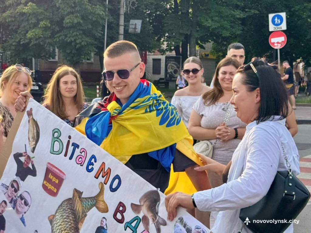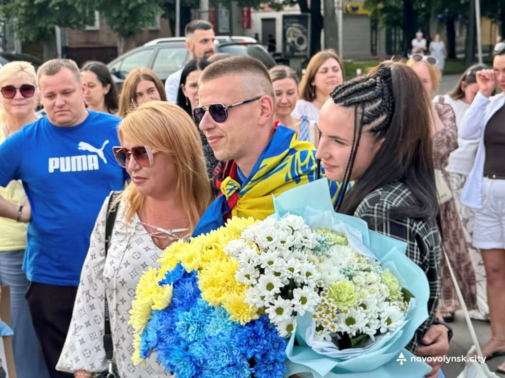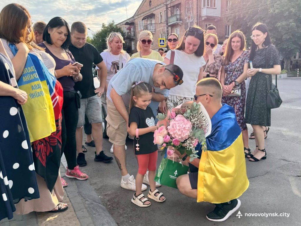 Зустріти Героя прийшли Нововолинський міський голова Борис Карпус, секретар ради Надія Жук, начальниця відділу ветеранської політики Марина Косаковська, працівники виконавчого комітету міської ради, рідні, знайомі, а також небайдужі мешканці громади.