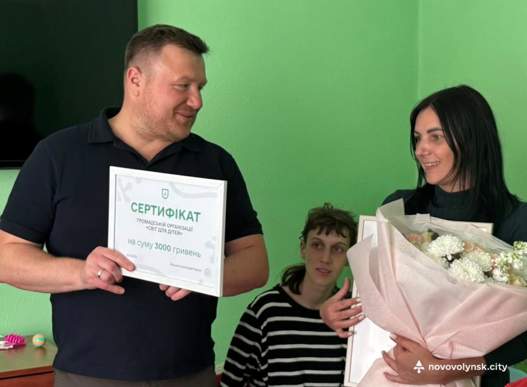 Очільник громади подякував керівниці організації Юлії Пушкіній, батькам та дітям за їхню щоденну працю, витримку й силу духу, також вручив сертифікат на суму три тисячі гривень для підтримки подальшої діяльності організації», – йдеться у повідомленні.