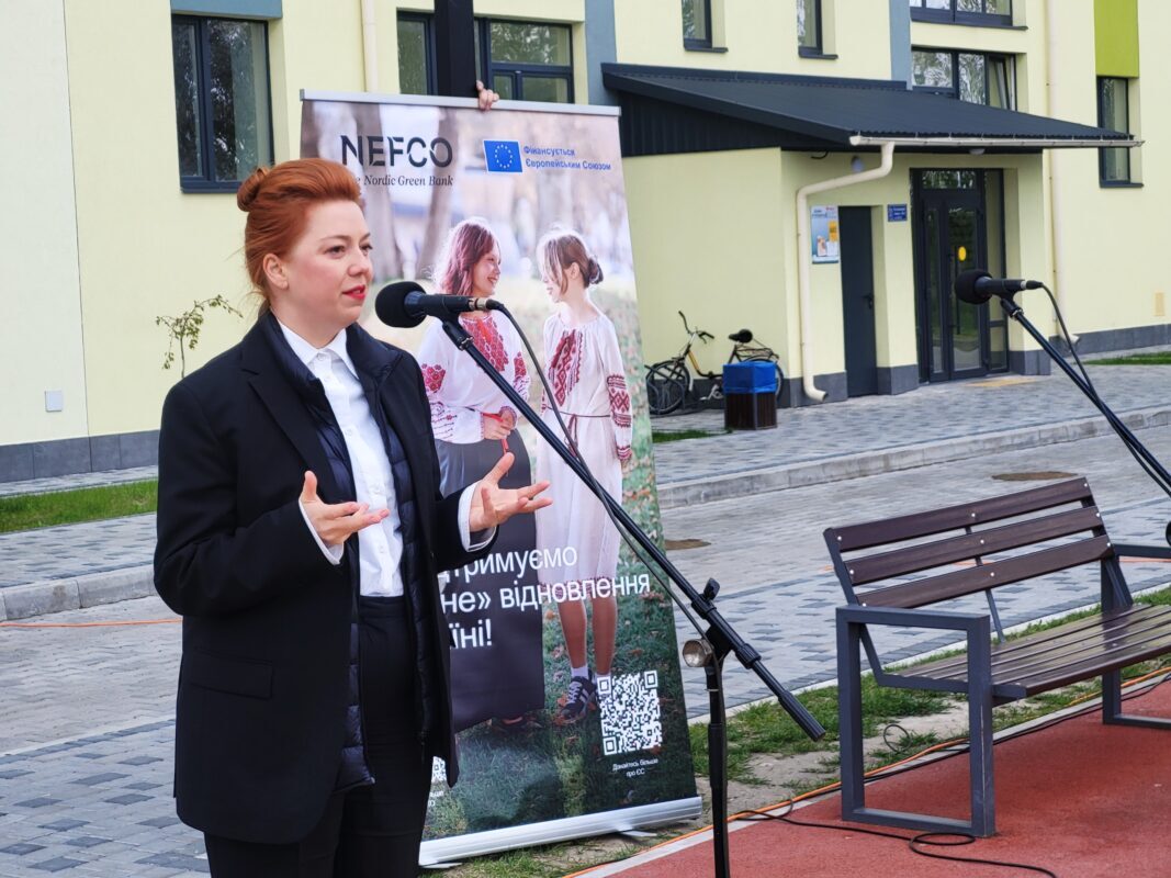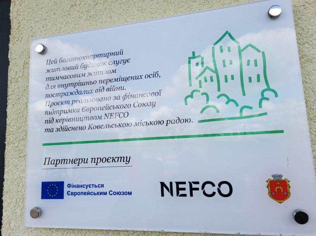 Один із таких – житловий комплекс для внутрішньо переміщених осіб. Це перший повністю завершений проєкт серед дев’яти громад-учасниць у межах програми Європейського Союзу «Житло для внутрішньо переміщених осіб (ВПО) та відновлення звільнених міст в Україні», що впроваджується під управлінням Північної екологічної фінансової корпорації (НЕФКО). НЕФКО – міжнародна організація, створена п’ятьма країнами Європи: Данією, Швецією, Норвегією, Фінляндією та Ісландією.