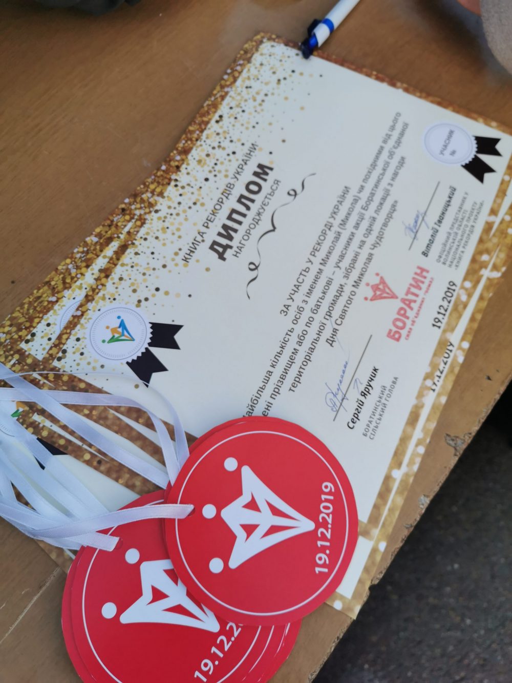 «Родзинкою» свята стало встановлення нового рекорду України. Офіційний представник Книги рекордів України на Волині, заслужений діяч мистецтв Віталій Іваницький зафіксував новий рекорд – 287 Миколаїв (осіб з іменем Микола чи похідними від цього імені прізвищем або по батькові) – учасників акції Боратинської об’єднаної громади, зібрали на одній локації з нагоди Дня Святого Миколая Чудотворця.