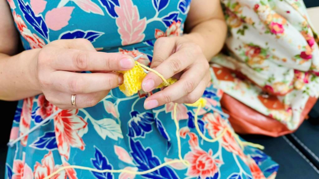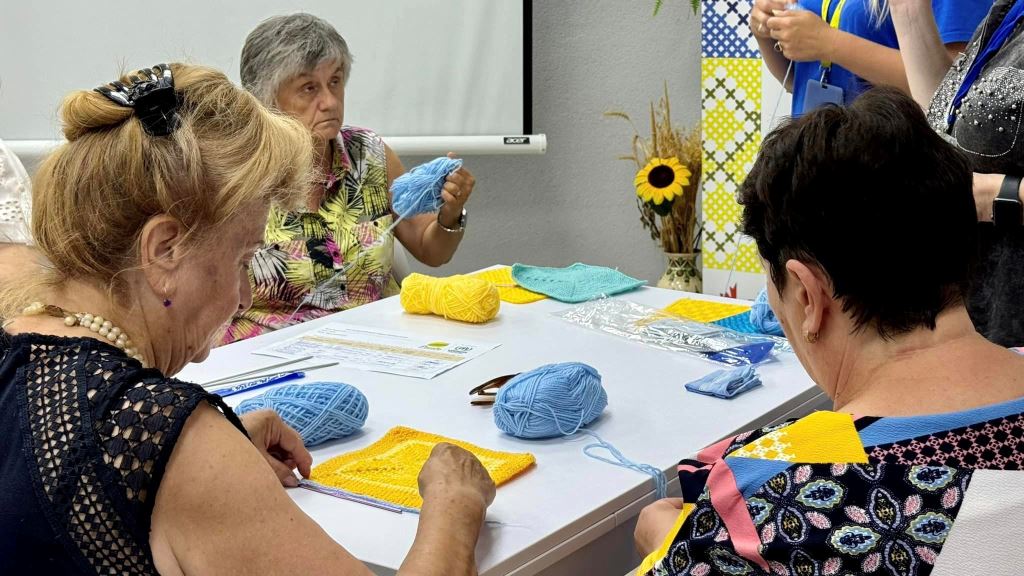 Учора, 16 липня, у бібліотеці-філії № 1 мешканці Нововолинська та внутрішньо переміщені особи вʼязали сині та жовті шматочки для найбільшого теплого прапора України.