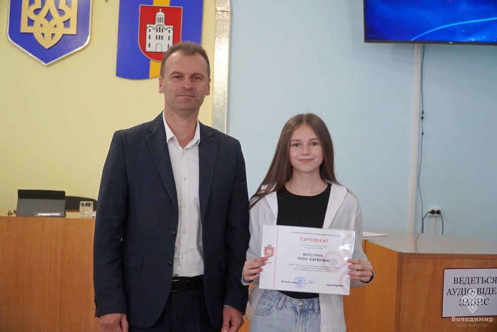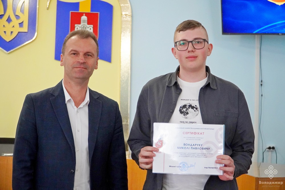 25 вересня перед засіданням сесії міської ради очільник громади Ігор Пальонка вручив сертифікати на отримання стипендії міського голови кращим учням і студентам закладів освіти, що функціонують на території Володимир-Волинської територіальної громади.