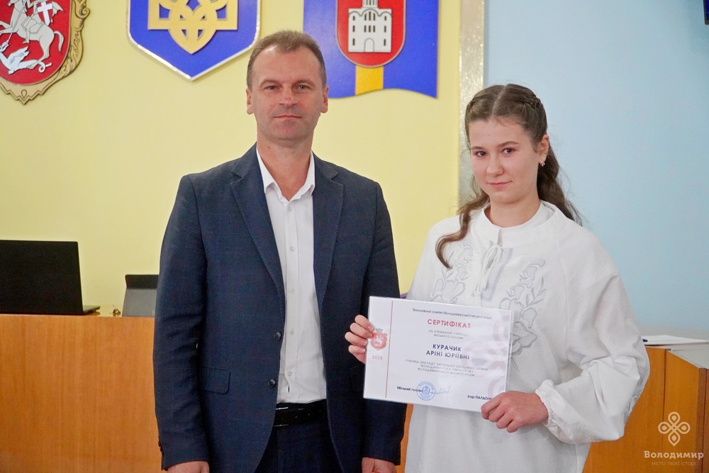 Обдарованим учням Володимира вручили сертифікати на отримання стипендії міського голови