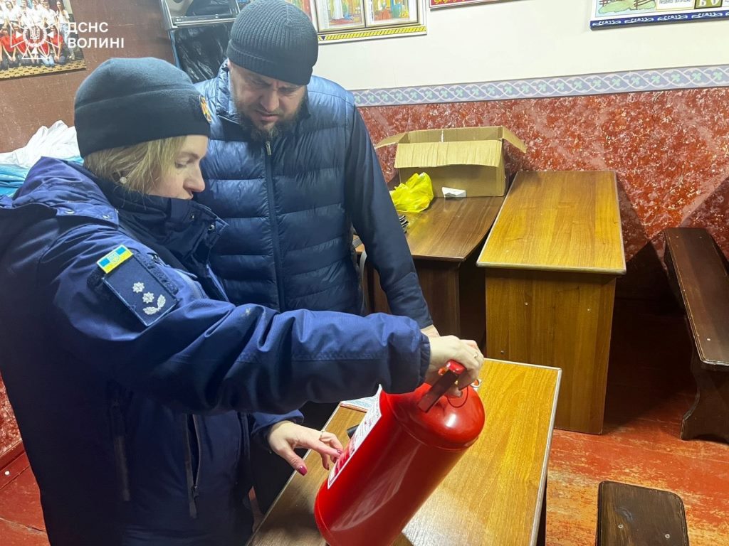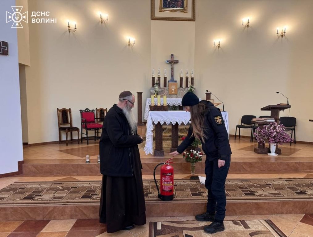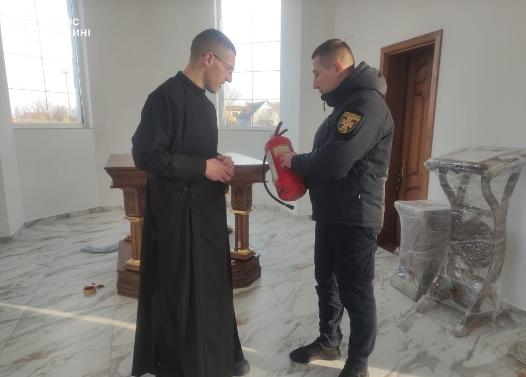 Рятувальники надають рекомендації священнослужителям щодо безпечного використання свічок та приладів обігріву, належного утримання шляхів евакуації, а також навчають користуватись первинними засобами пожежогасіння.