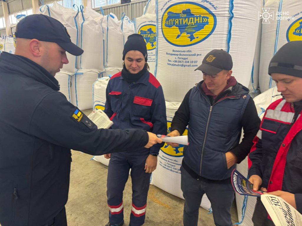 Вони нагадали правила пожежної безпеки при сушінні зернових культур, порядок застосування вогнегасників, заборону використання відкритого вогню та провели інструктаж щодо дій працівників у разі виявлення вибухонебезпечних предметів.
