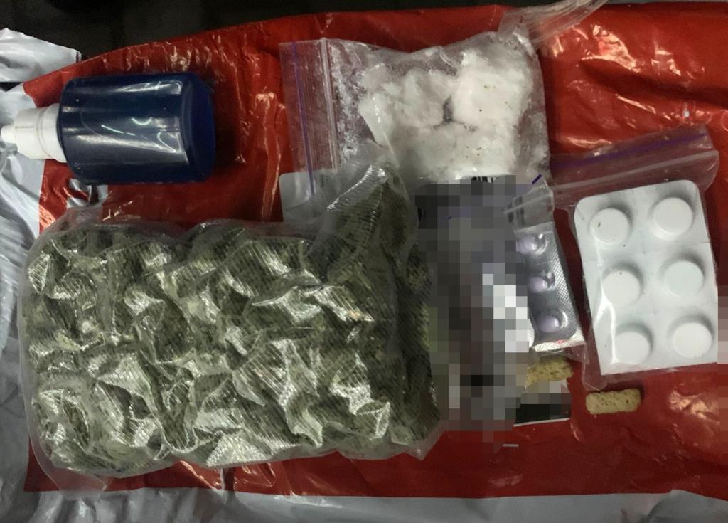 На вулиці Володимирській у нього виявили пакунок, в якому зберігалися наркотичні та психотропні речовини: близько 400 грам марихуани, 30 грам амфетаміну, 40 таблеток трамадолу.