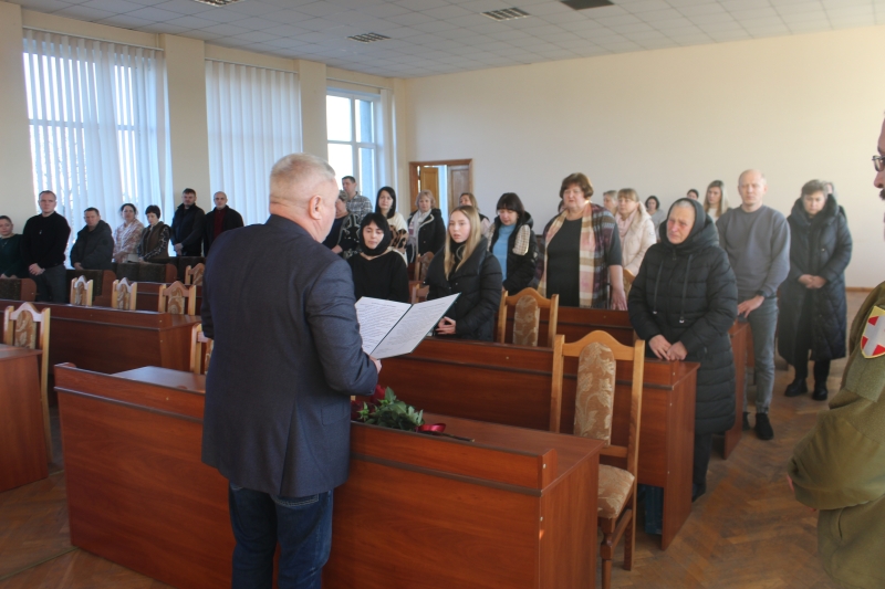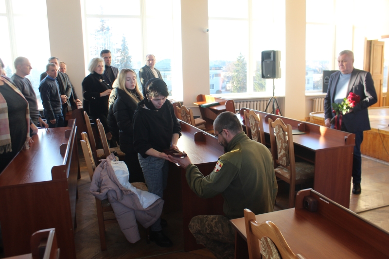 У приміщенні Маневицької селищної ради, очільник громади Олександр Гаврилюк, старший інструктор відділення рекрутингу та комплектування Першого відділу Камінь-Каширського РТЦК та СП старший сержант Іван Зайчук вручили дружині Валентині Іванівні, доньці Вікторії державну нагороду та подякували мамі Надії Петрівні за належне виховання сина, який з честю і до кінця виконав свій службовий обов’язок, боронячи Україну від ворога.