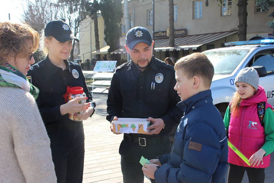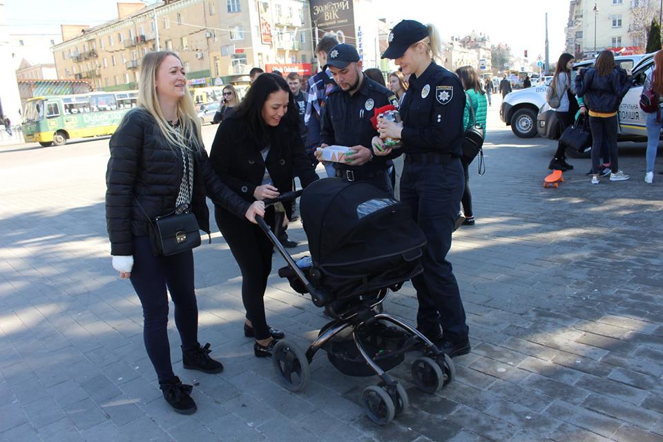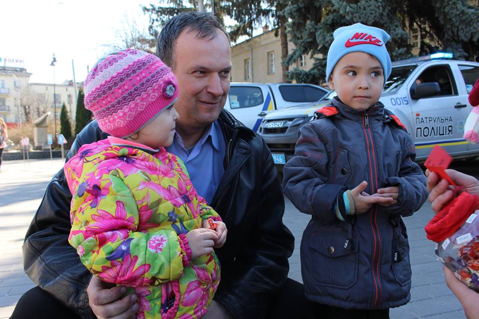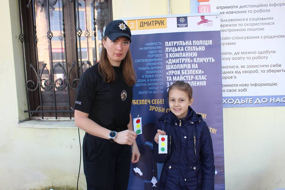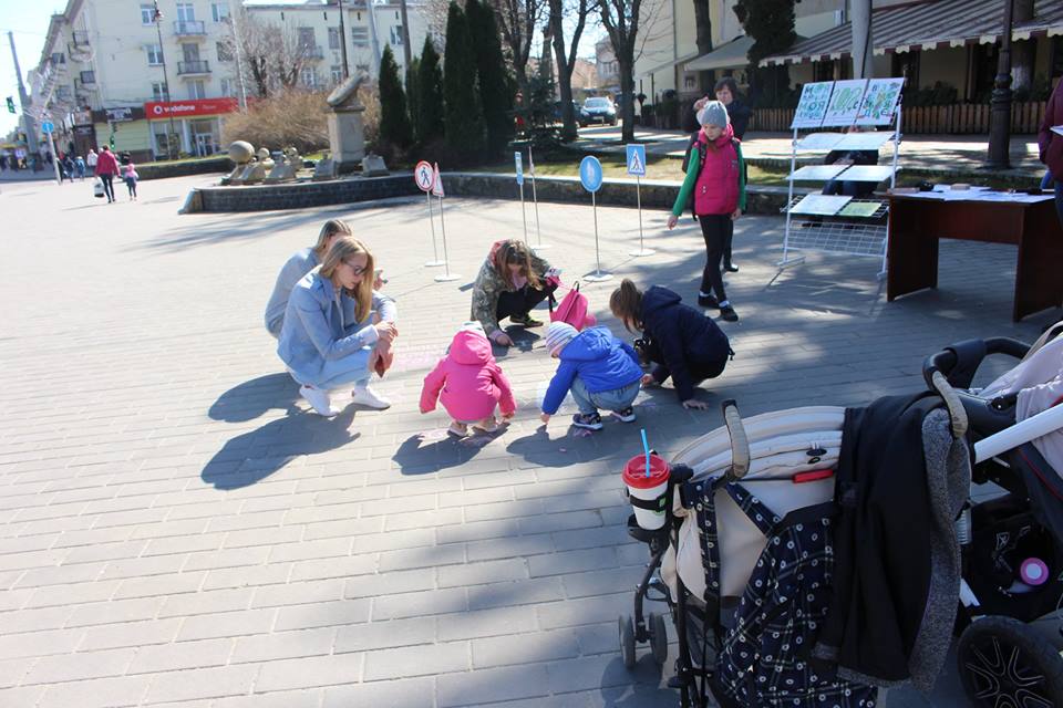 Вікторина на знання правил дорожнього руху і цукерки за правильні відповіді, фотографування у поліцейському автомобілі, виготовлення світловідбиваючих флікерів, малювання на асфальті, святкова виставка на тему патрульної поліції, заповнення карти міста Луцька безпечного для дітей, – усе це я відбувалось сьогодні, 4 квітня у центрі Луцька.