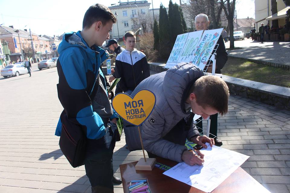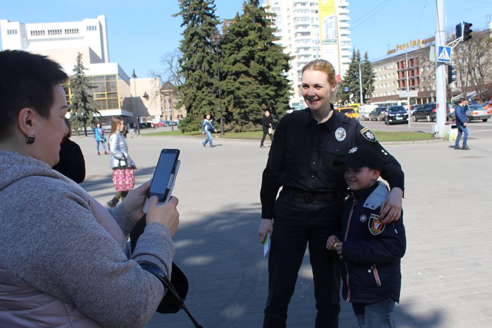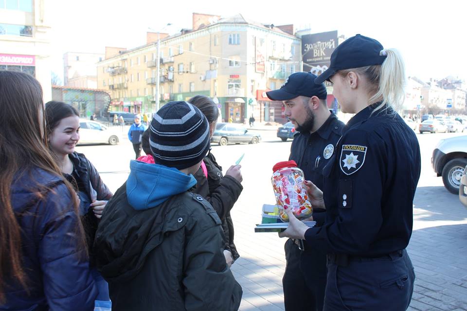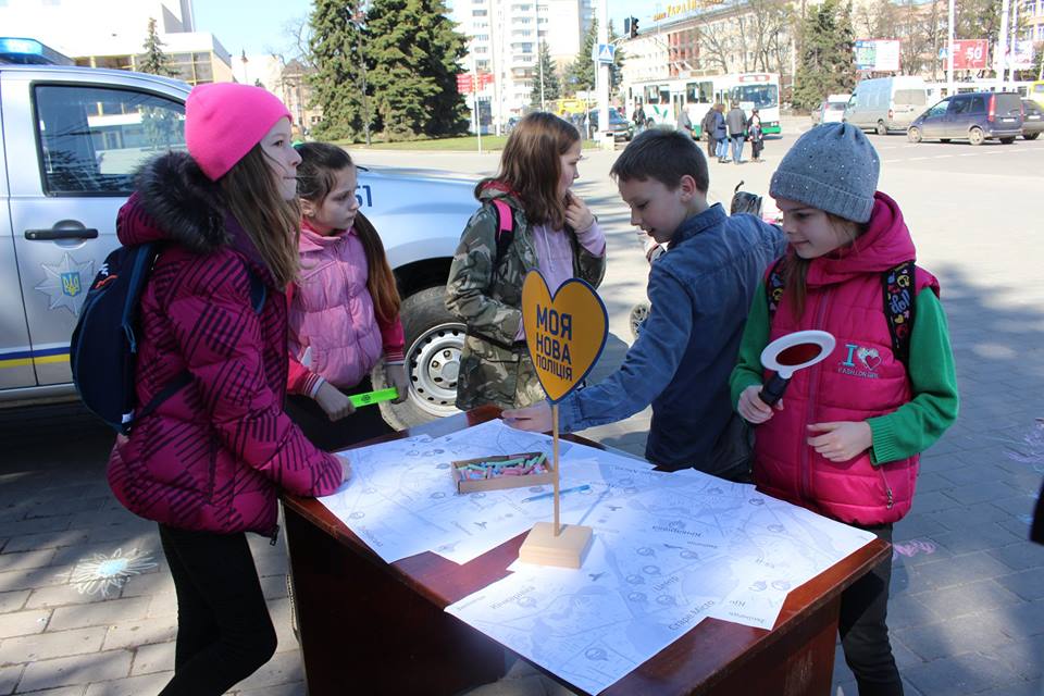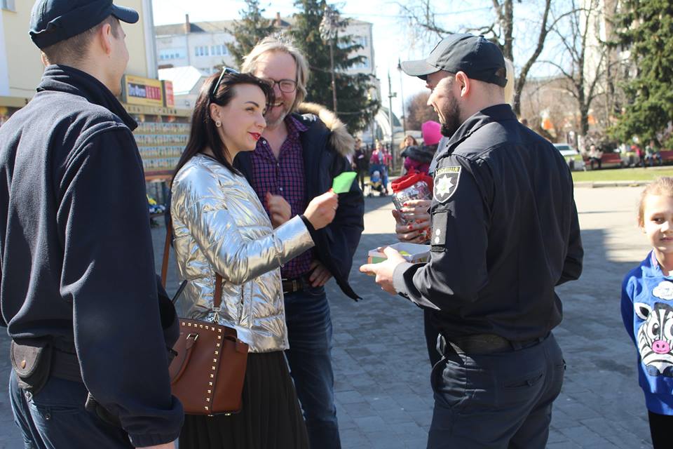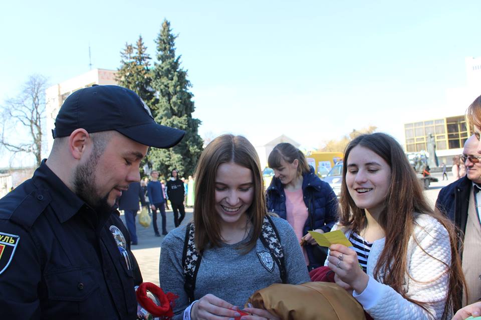 Вікторина на знання правил дорожнього руху і цукерки за правильні відповіді, фотографування у поліцейському автомобілі, виготовлення світловідбиваючих флікерів, малювання на асфальті, святкова виставка на тему патрульної поліції, заповнення карти міста Луцька безпечного для дітей, – усе це я відбувалось сьогодні, 4 квітня у центрі Луцька.