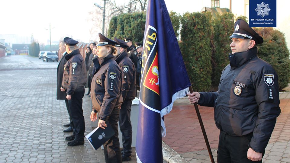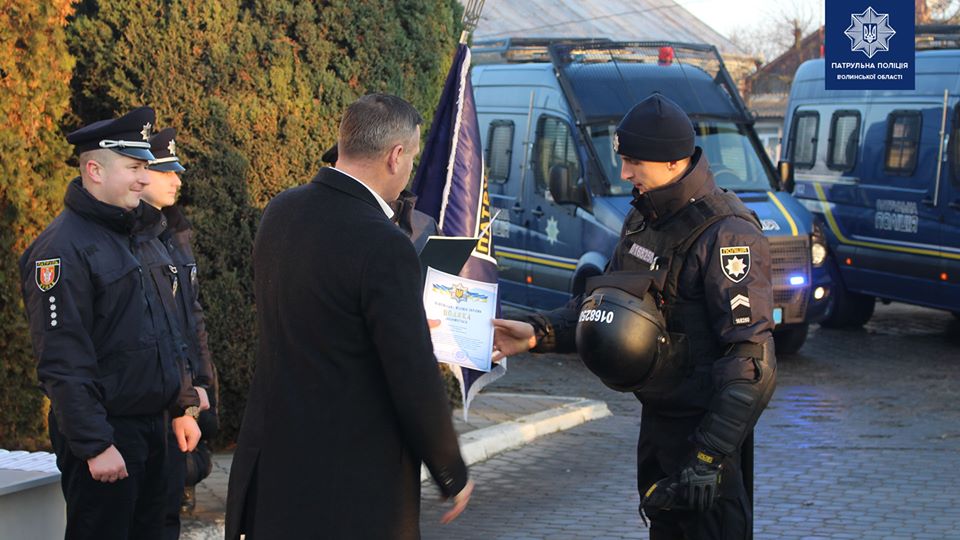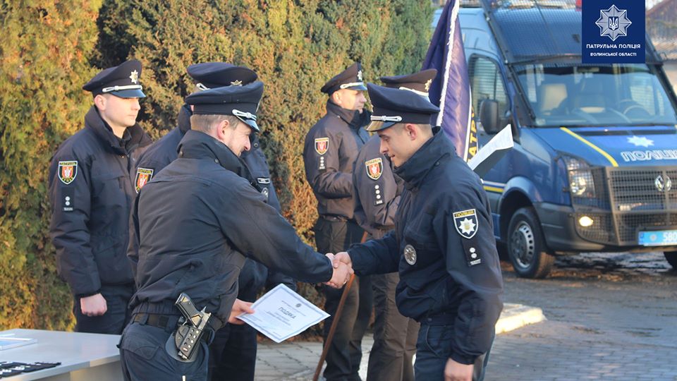 Начальник ГУНП у Волинській області Петро Шпига подякував патрульним за службу та побажав Божого благословення.