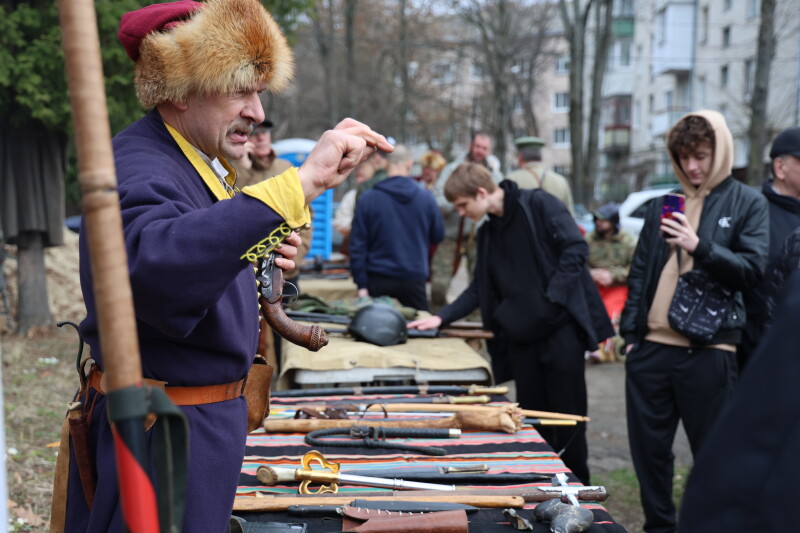 Добровольці, члени їхніх родин, волонтери, громадські активісти та представники влади, серед яких був Луцький міський голова Ігор Поліщук, мали нагоду поспілкуватися у неформальній атмосфері, оглянути виставку зброї. А вона стосувалася різних історичних періодів: козацької доби, Другої Світової війни, новітнього часу.