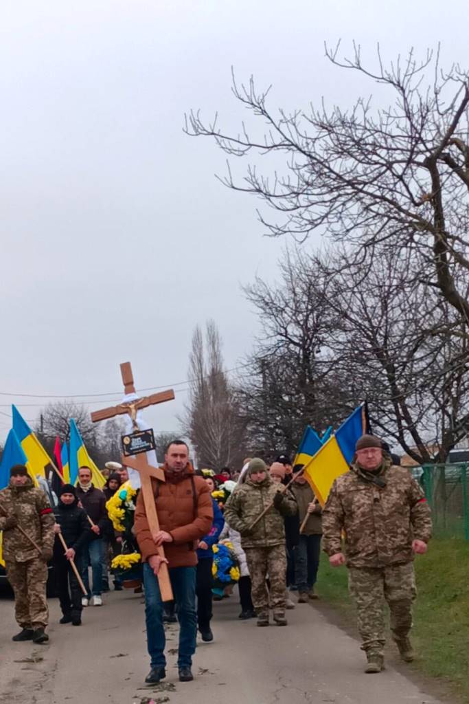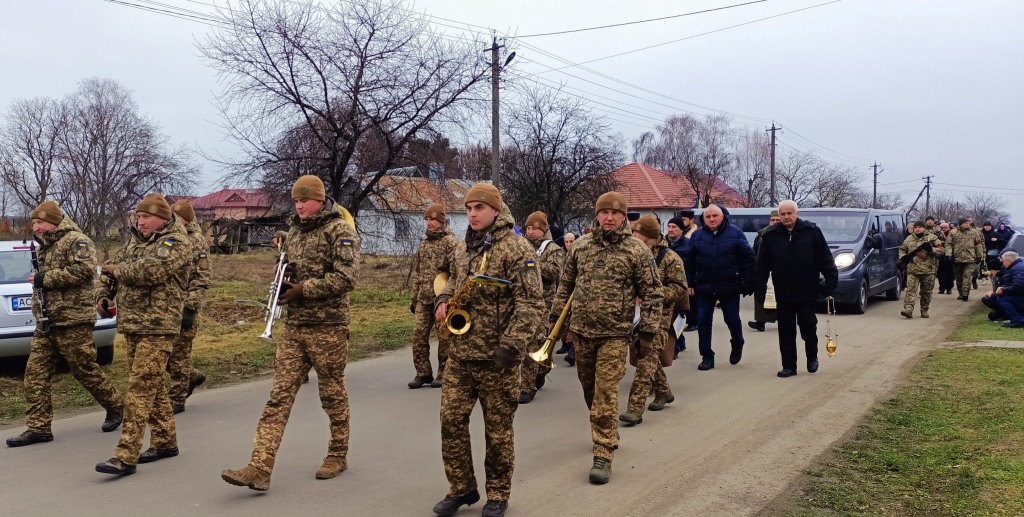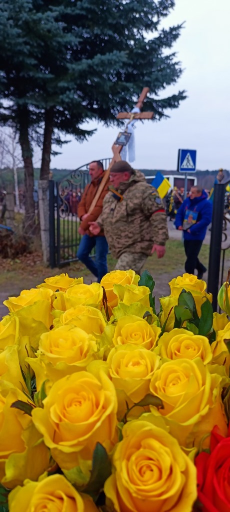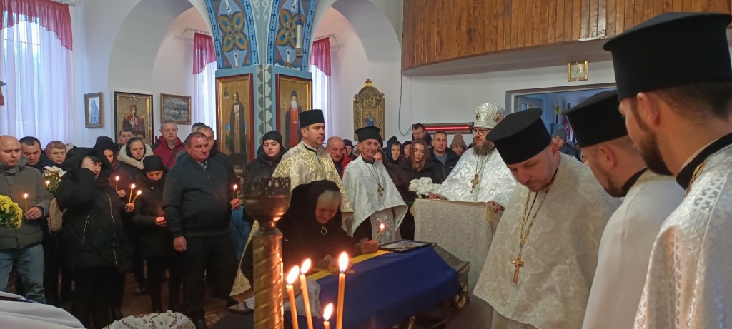 Від батьківського дому, де у спільній молитві священники благословляли останній шлях, Героя у супроводі траурного оркестру пішою ходою провели до Храму Успіння Пресвятої Богородиці. Тут, у сяйві свічок та скорботних співах, був звершений чин похорону, що освятив його перехід у Вічність.