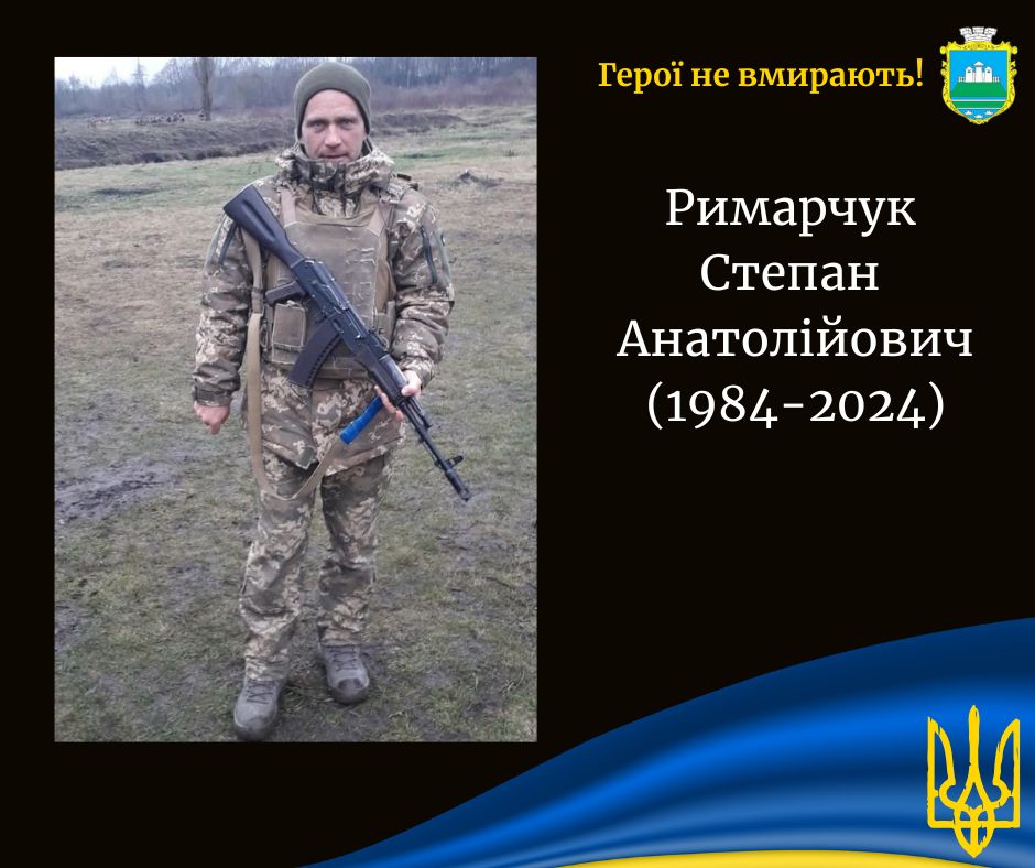 «Страшне горе втрати знову не оминуло нашу громаду. З глибоким сумом повідомляємо про підтвердження загибелі Героя-краянина, мужнього воїна із села Олексіївка – Римарчука Степана Анатолійовича, 1984 року народження.