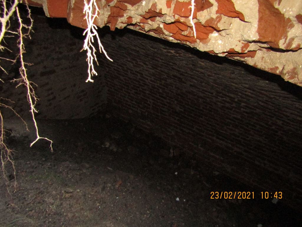 У ямі, що утворилася внаслідок обвалу землі, чітко видно муровані цегляні стіни. Цегла з них була взята для експертизи. Фахівці теж повідомляють, що це може бути частина підземних ходів.