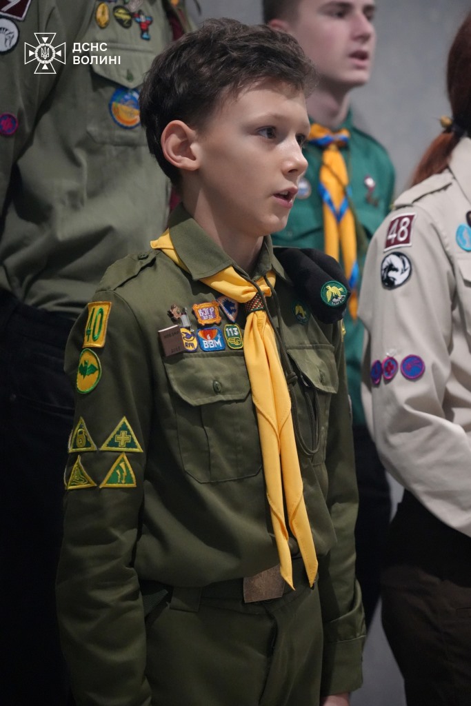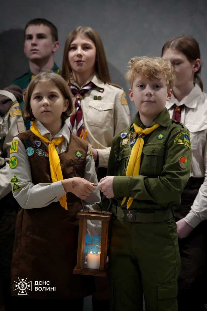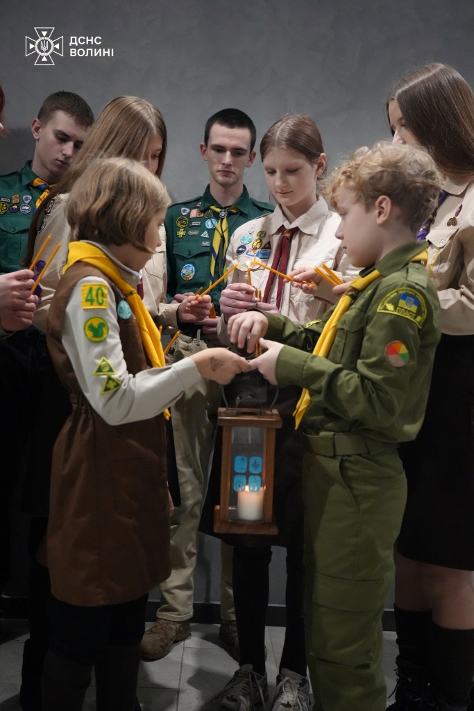 Волинські пластуни прибули до Головного управління ДСНС України у Волинській області й передали співробітникам ДСНС Вифлеємський вогонь миру.