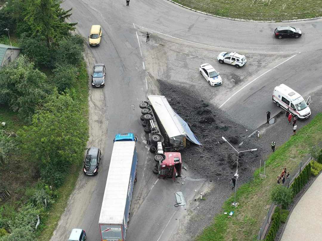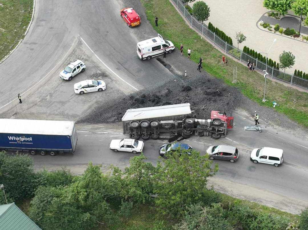 Поблизу Луцька на проїжджій частині дороги перевернулась вантажівка