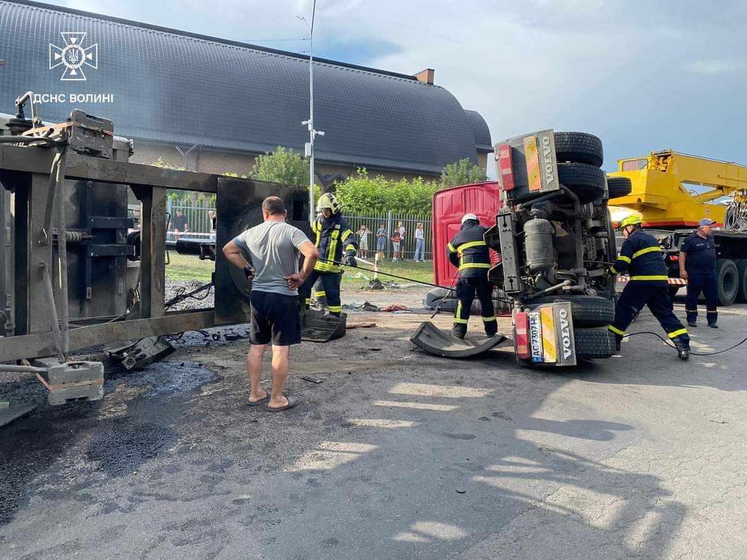 Учора, 23 липня, до Служби порятунку 101 надійшло повідомлення про те, що поблизу села Підгайці Луцької громади на проїжджій частині дороги перевернулась вантажівка.