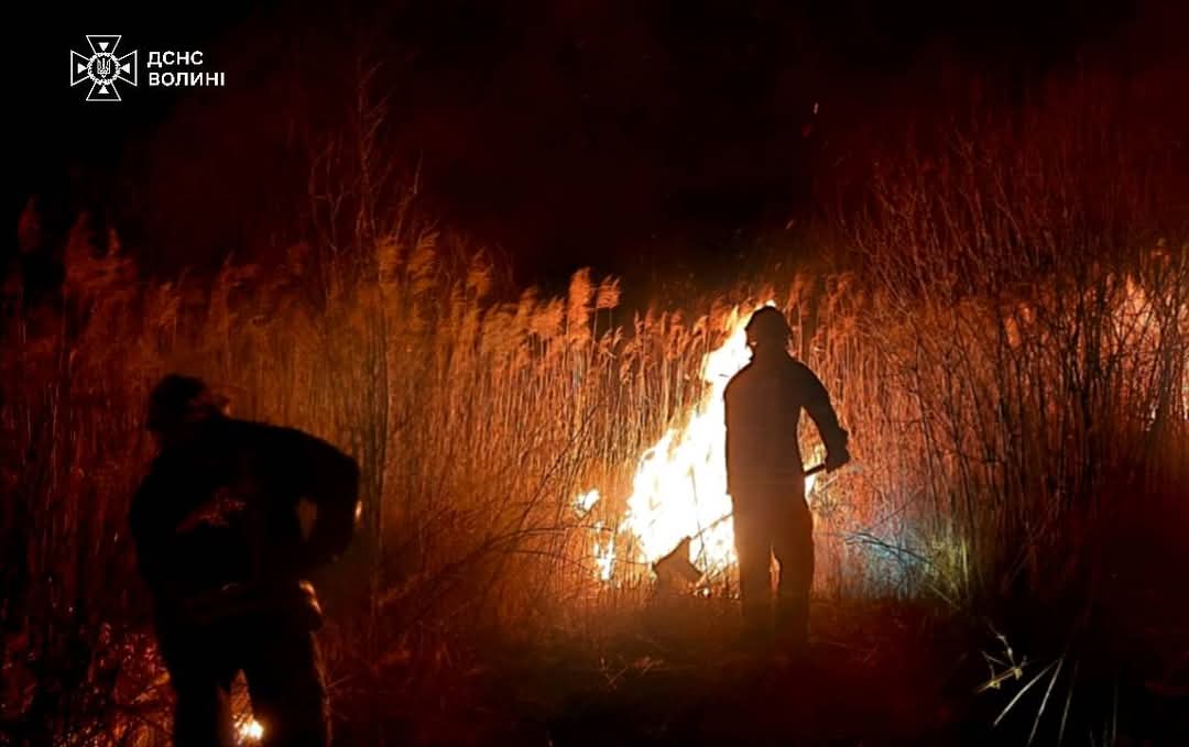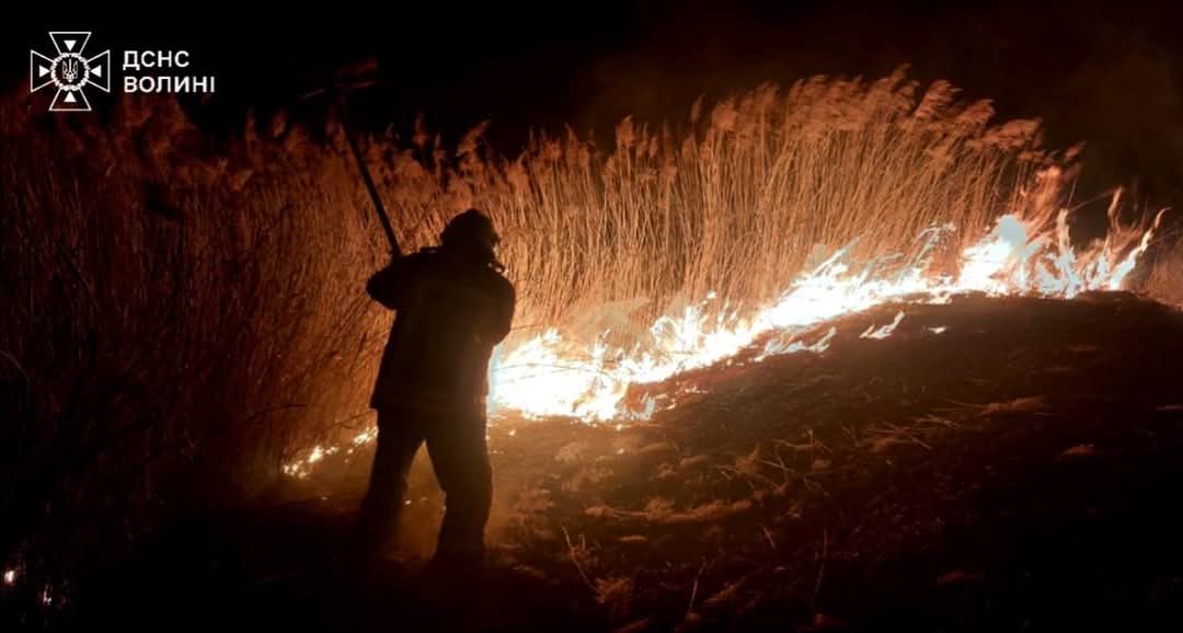 Учора увечері, 5 березня, у Луцькому районі горів очерет, суха трава і чагарники на заболоченому схилі біля села Мстишин. Хтось вирішив “прибрати” територію, підпаливши її.