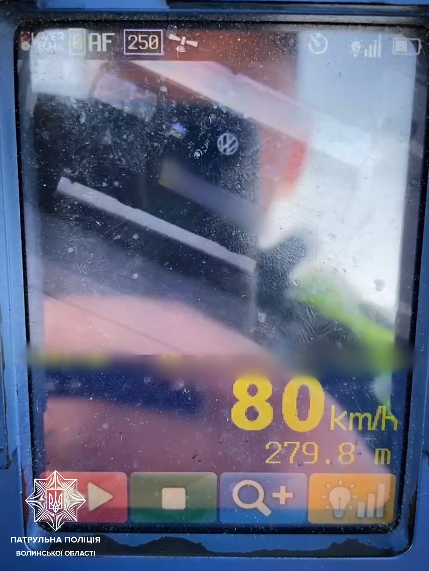Учора екіпаж патрульних ніс службу на автодорозі в селі Струмівка, там інспектори вимірювали швидкісний режим за допомогою лазерного вимірювача швидкості TruCAM. Близько 12:30 прилад зафіксував, що автомобіль Volkswagen рухається зі швидкістю 80 км/год.