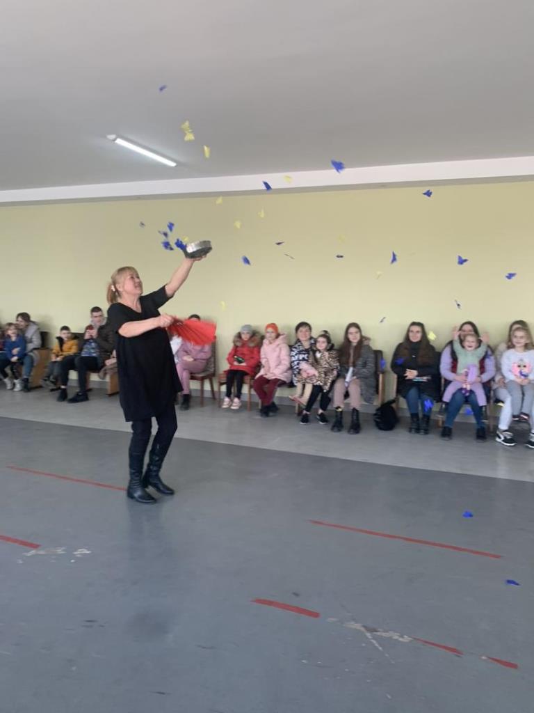 Перший культурно-мистецький захід у рамках проекту відбувся у селі Гірка Полонка. Розважати дітлахів завітали місцеві волонтери Тетяна та Михайло Чиканюки. На учасників дійства чекала насичена програма – ігри та конкурси з клоуном, створення малюнків для підтримки Захисників України.