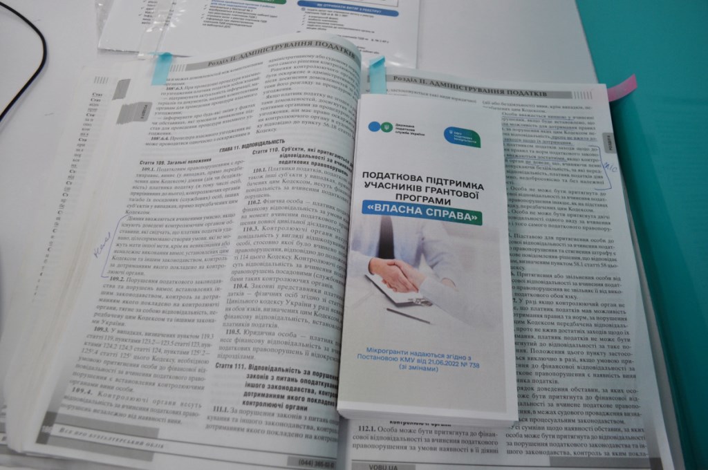 Зокрема під час подачі бізнес-плану (отримання довідок про доходи, підтвердження відсутності податкової заборгованості), одразу після отримання гранту (консультації щодо форми господарської діяльності, вибір оптимальної системи оподаткування), на старті бізнесу (навчальні програми з податкової грамотності, практичні роз’яснення щодо звітності та обліку), у процесі діяльності (постійне консультування з податкових питань, допомога з декларуванням, ліцензіями, реєстрацією та застосуванням РРО/ПРРО, перевірка стану розрахунків з бюджетом).