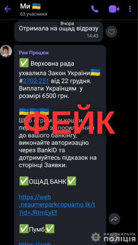 Поліція застерігає волинян: «закон» про 6500 та 13 200 гривень громадянам – шахрайство