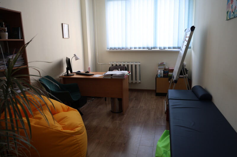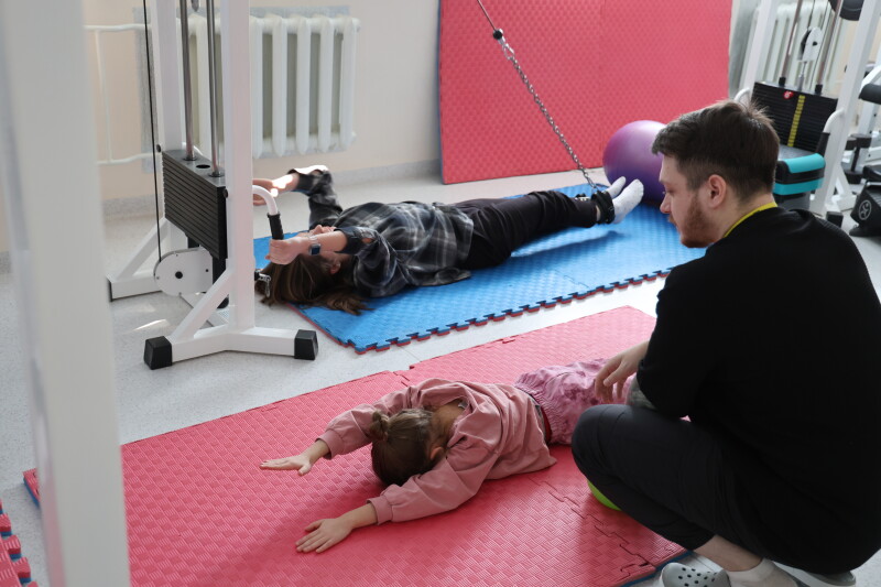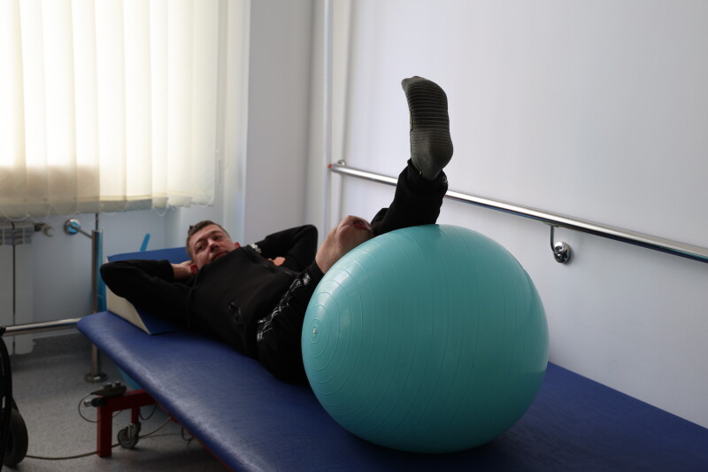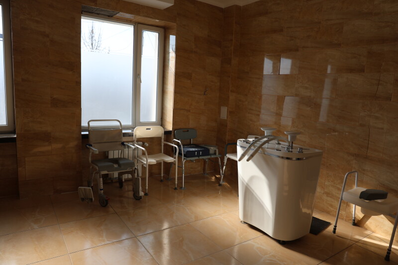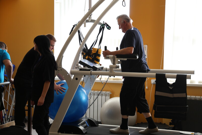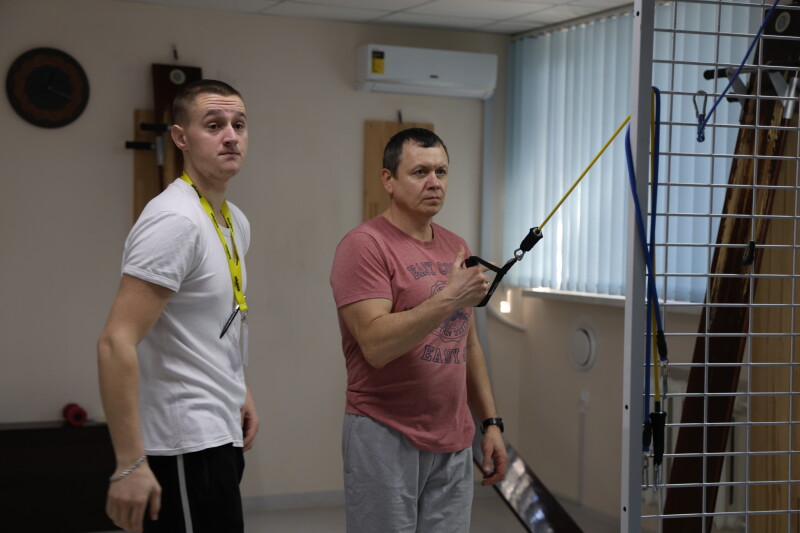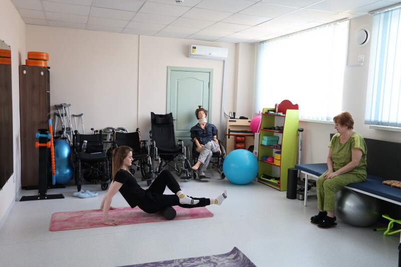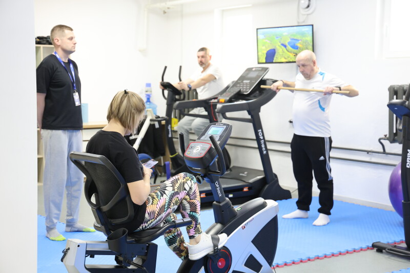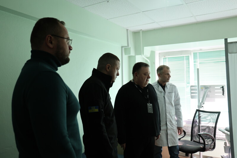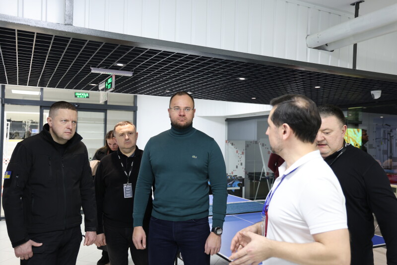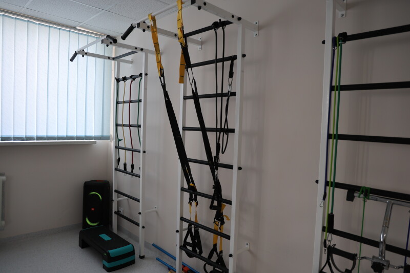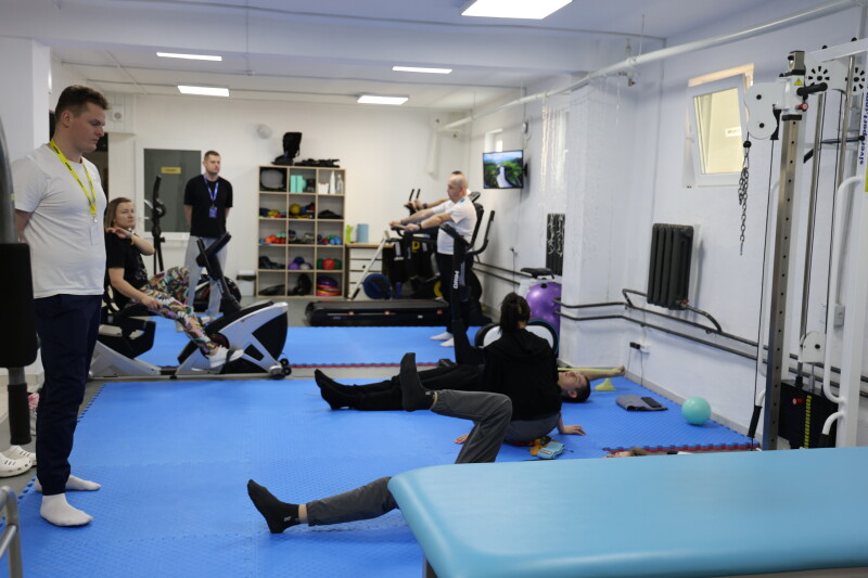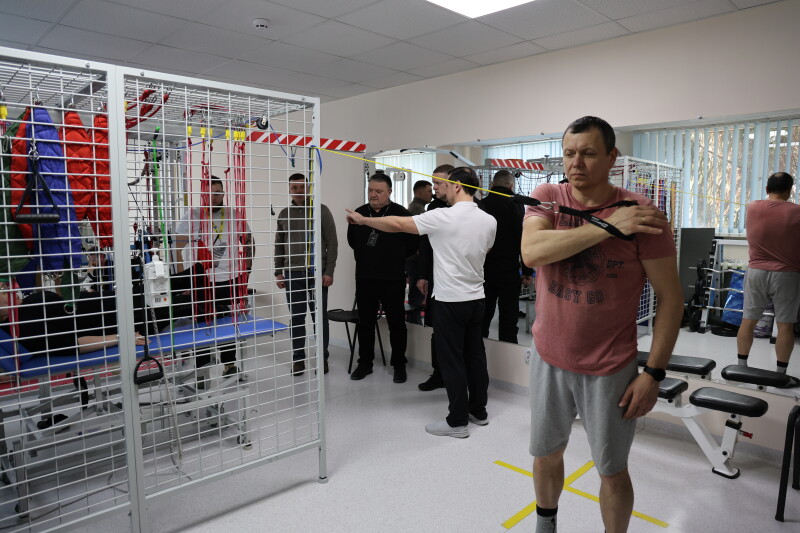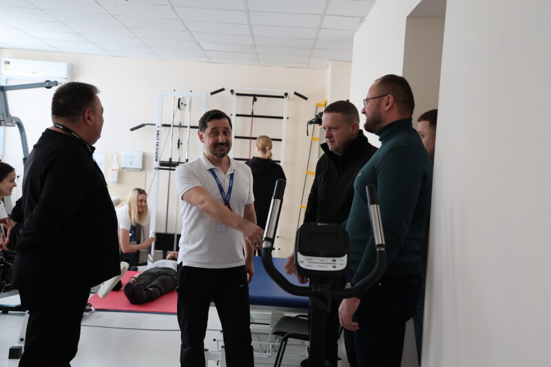 Особливу увагу під час огляду привернув зал кінезотерапії, який діє у напівпідвальному приміщенні площею близько 900 квадратних метрів. Він слугує не тільки місцем для реабілітації, а й укриттям. Зал оснащений усім необхідним для ефективного проведення реабілітаційних процедур.