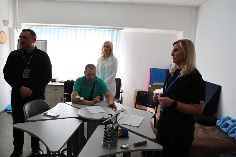 В.о. директора Ігор Гнетньов провів екскурсію та розповів про роботу закладу. За його словами, у реабілітаційному центрі працюють три відділення: реабілітації, паліативної допомоги та медико-психологічної реабілітації. Заклад має комфортні умови для перебування пацієнтів: сучасний ремонт, інклюзивність усіх приміщень, досвідчений, висококваліфікований та персонал, що постійно проходить стажування за кордоном для вдосконалення знань та вмінь.