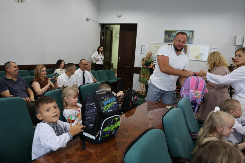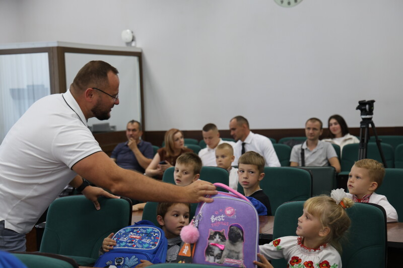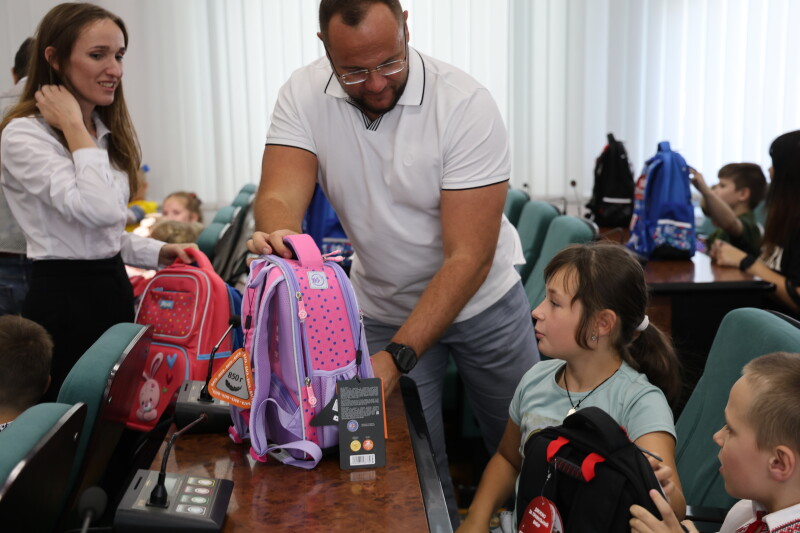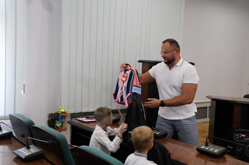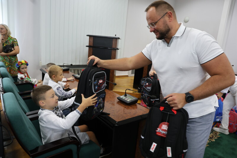 Поліщук вручив дітям пільгових категорій перші у їхньому житті шкільні портфелі