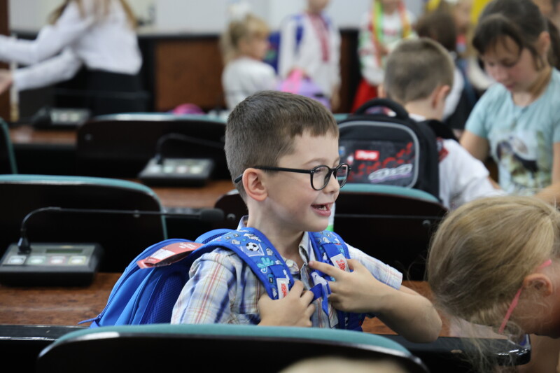“Цього року наша держава підтримала першокласників. Завдяки програмі Є-підтримка кожна мама може зареєструватися і отримати 5000 гривень. Але як мами, які також мають своїх дітей, внуків, ми розуміємо, що цих коштів не достатньо. Тому за підтримки багатьох меценатів діти отримали свої перші ранці. Дуже знаково, що свою дорогу у шкільне життя вони почали з сесійної зали. Діти – наше майбутнє. Можливо, саме вони колись займуть крісла депутатів, керівників структурних підрозділів, а можливо, і пост президента або міського голови”, – сказала керівник управління Ліна Галан.