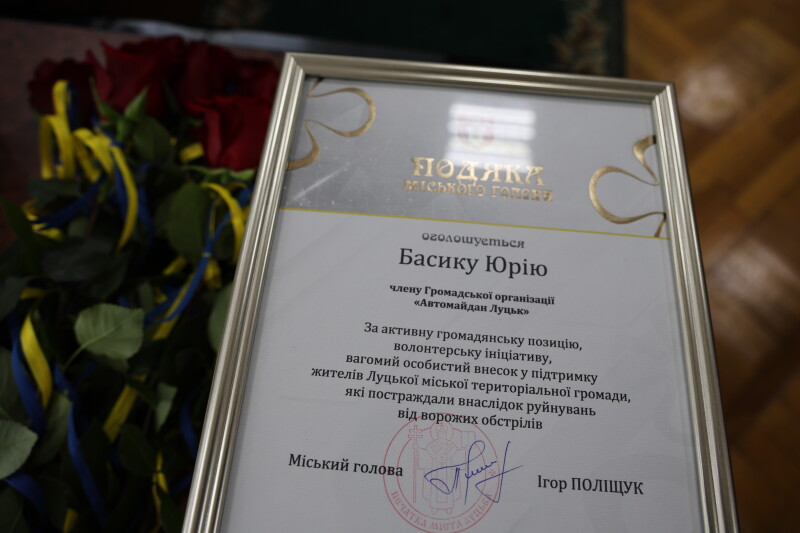Поліщук вручив Подяки представникам громадського сектору за допомогу в ліквідації наслідків ворожих обстрілів Луцька